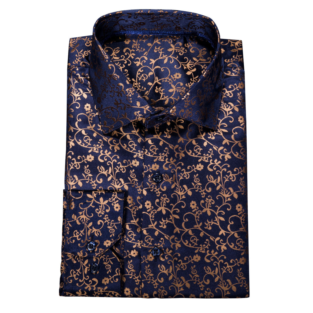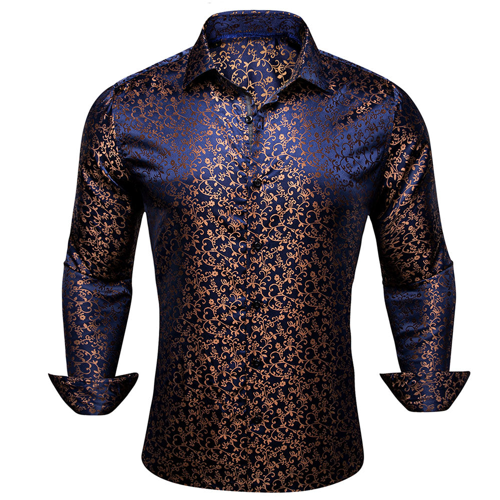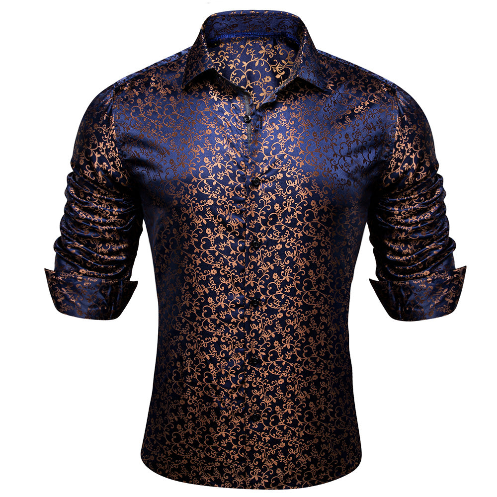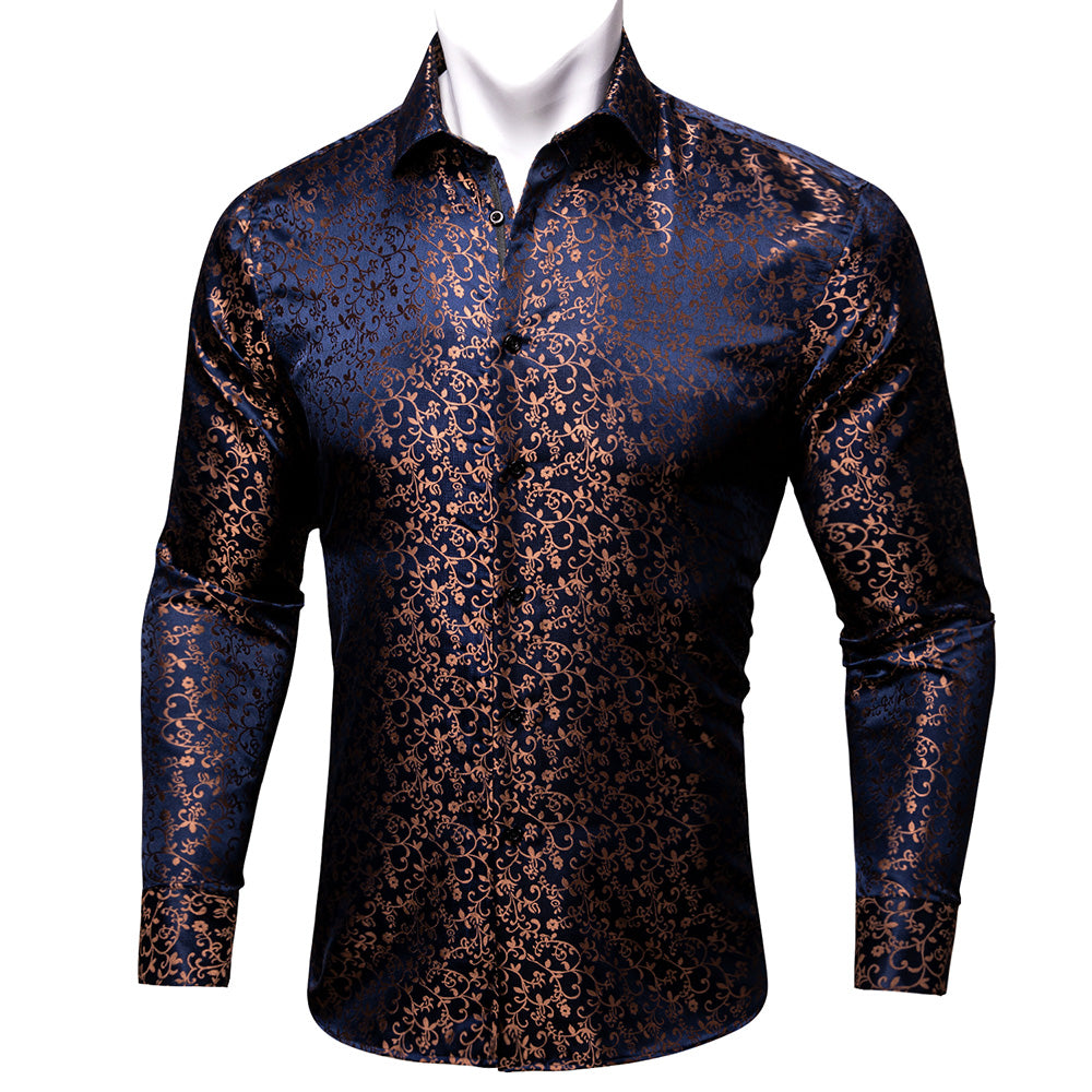 Barry. Wang Mens Button Down Shirt Copper Paisley Casual Silk Long Sleeve Dress Shirt