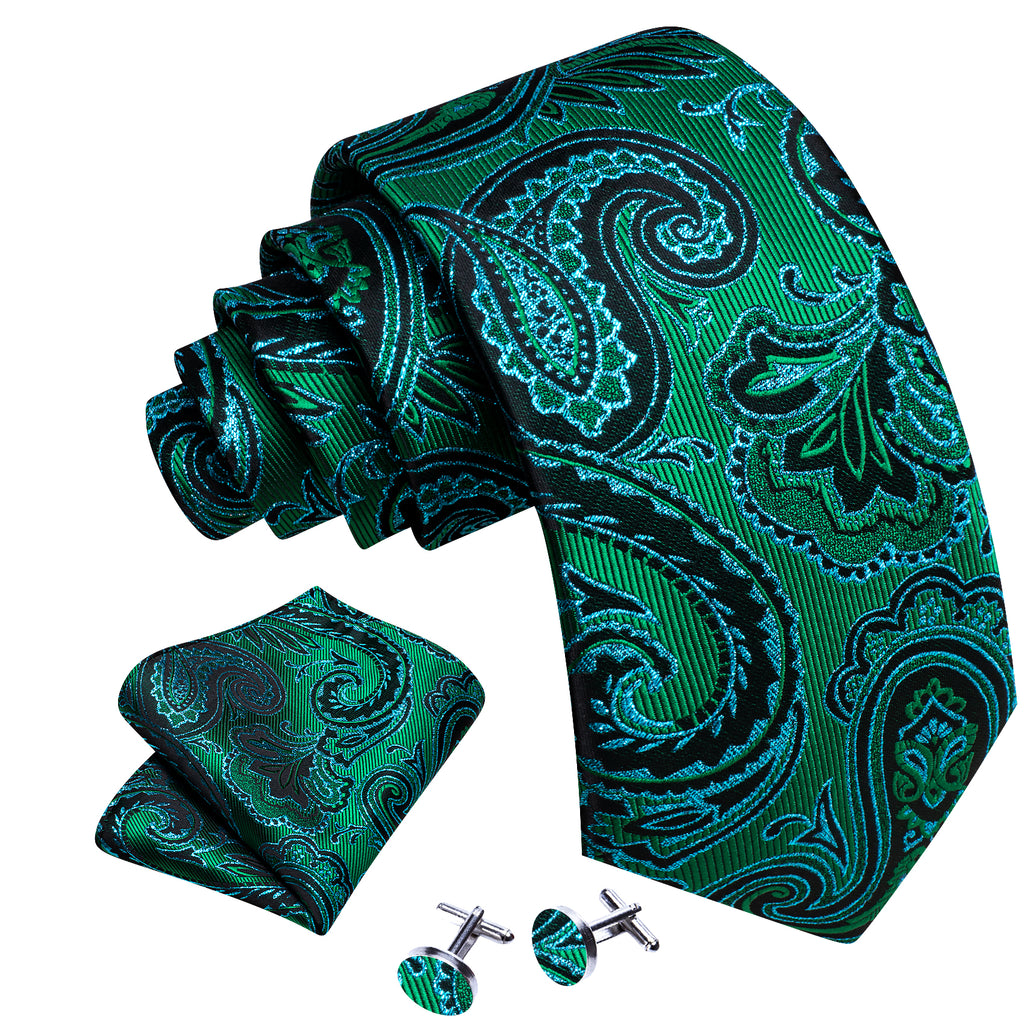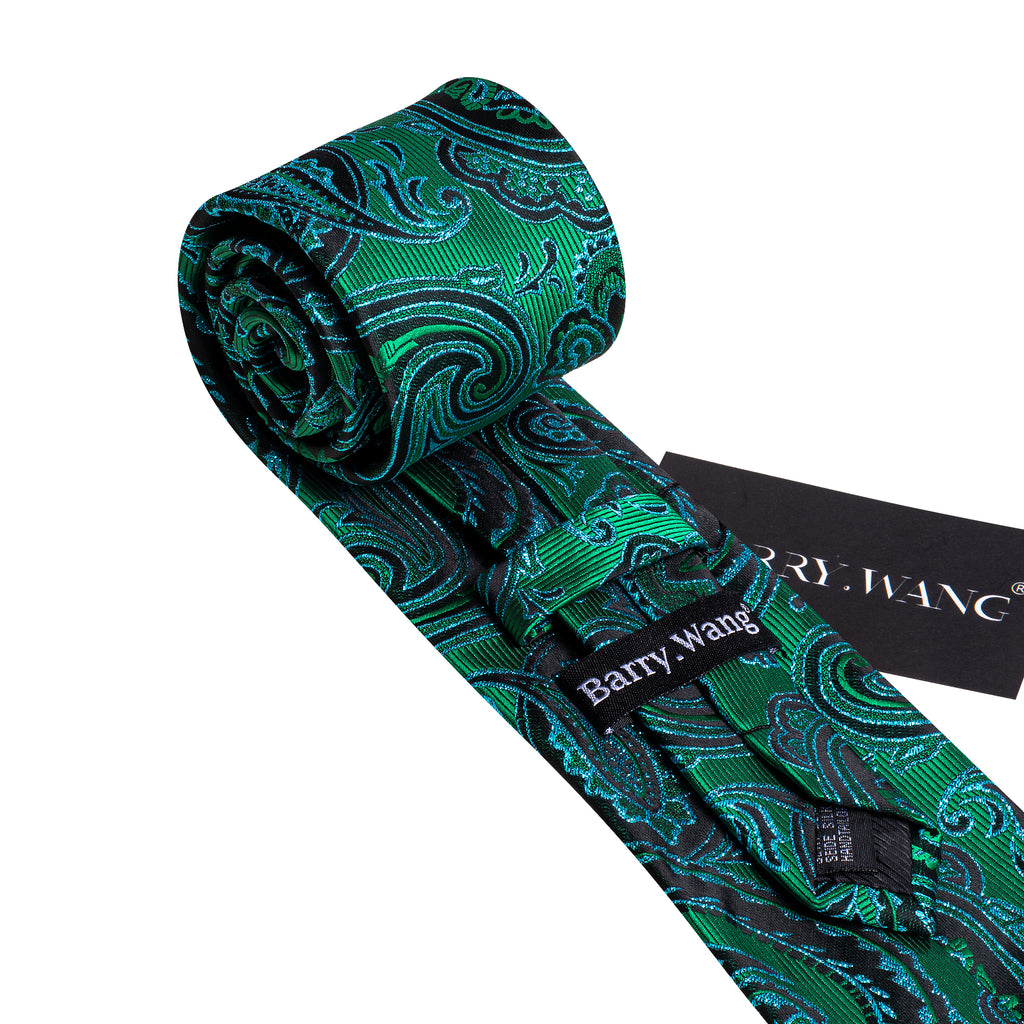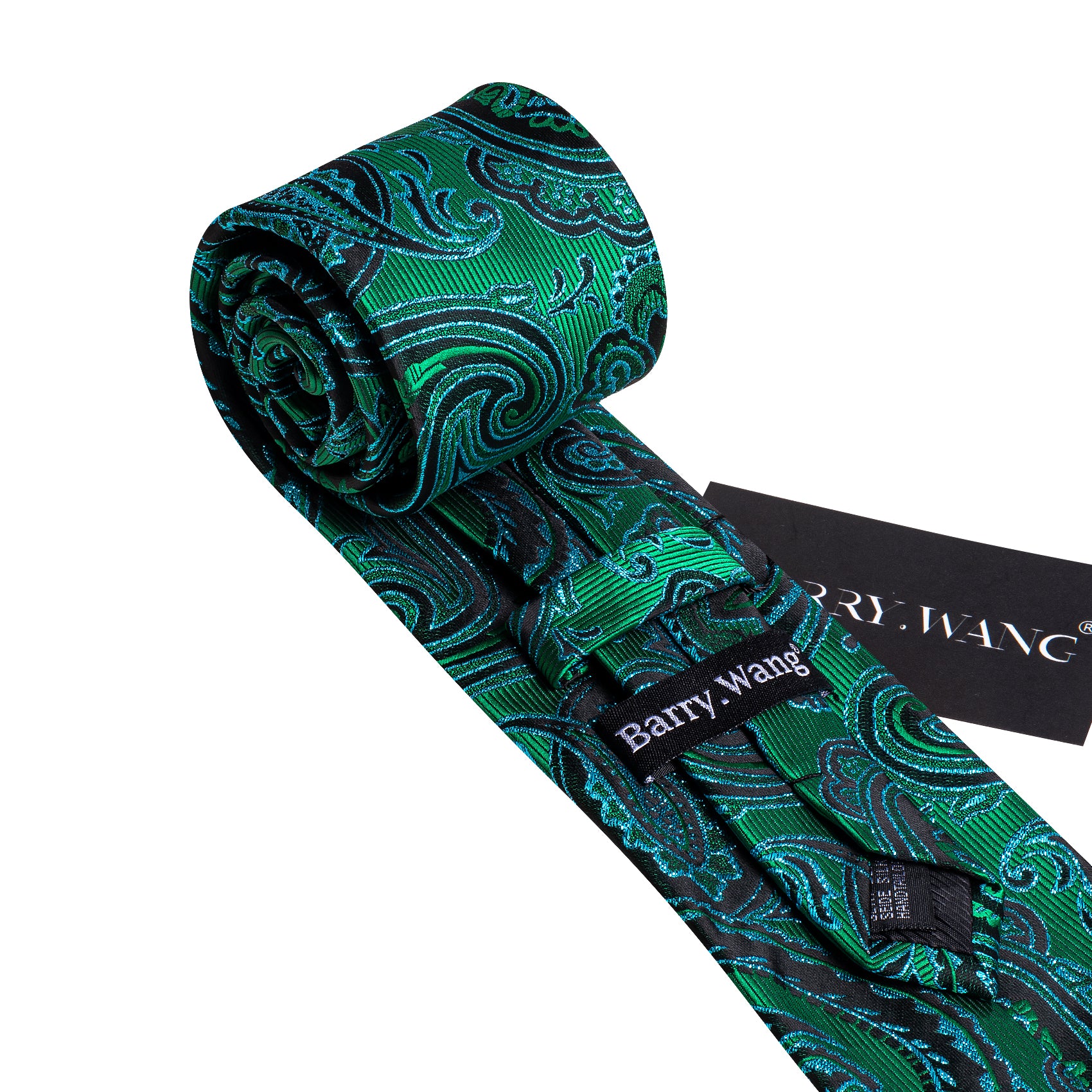 Barry. Wang Blue Green Paisley Silk Tie Hanky Cufflinks Set