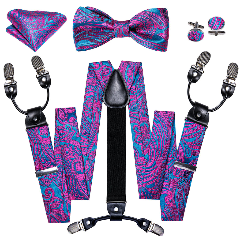 Barry. Wang Blue Purple Paisley Y Back Adjustable Suspender Bow Tie Hanky Cufflinks Set
