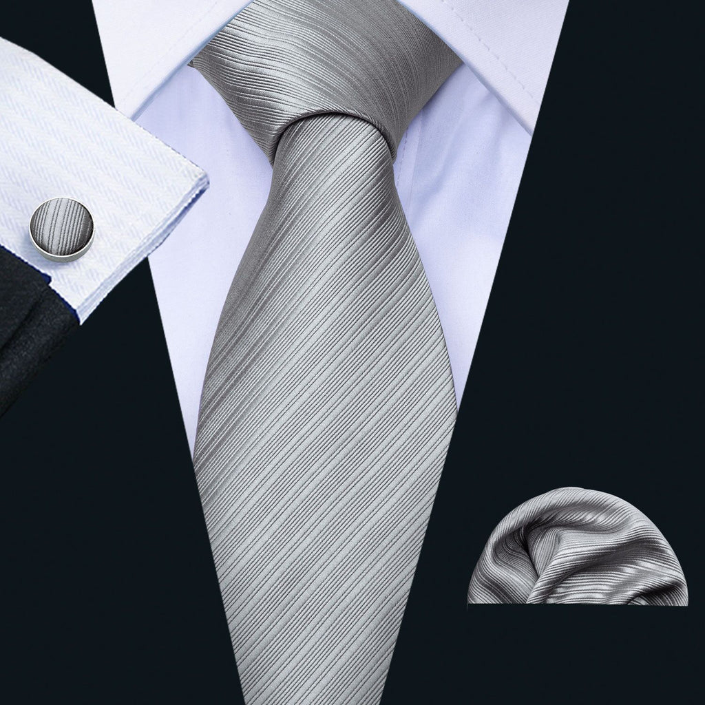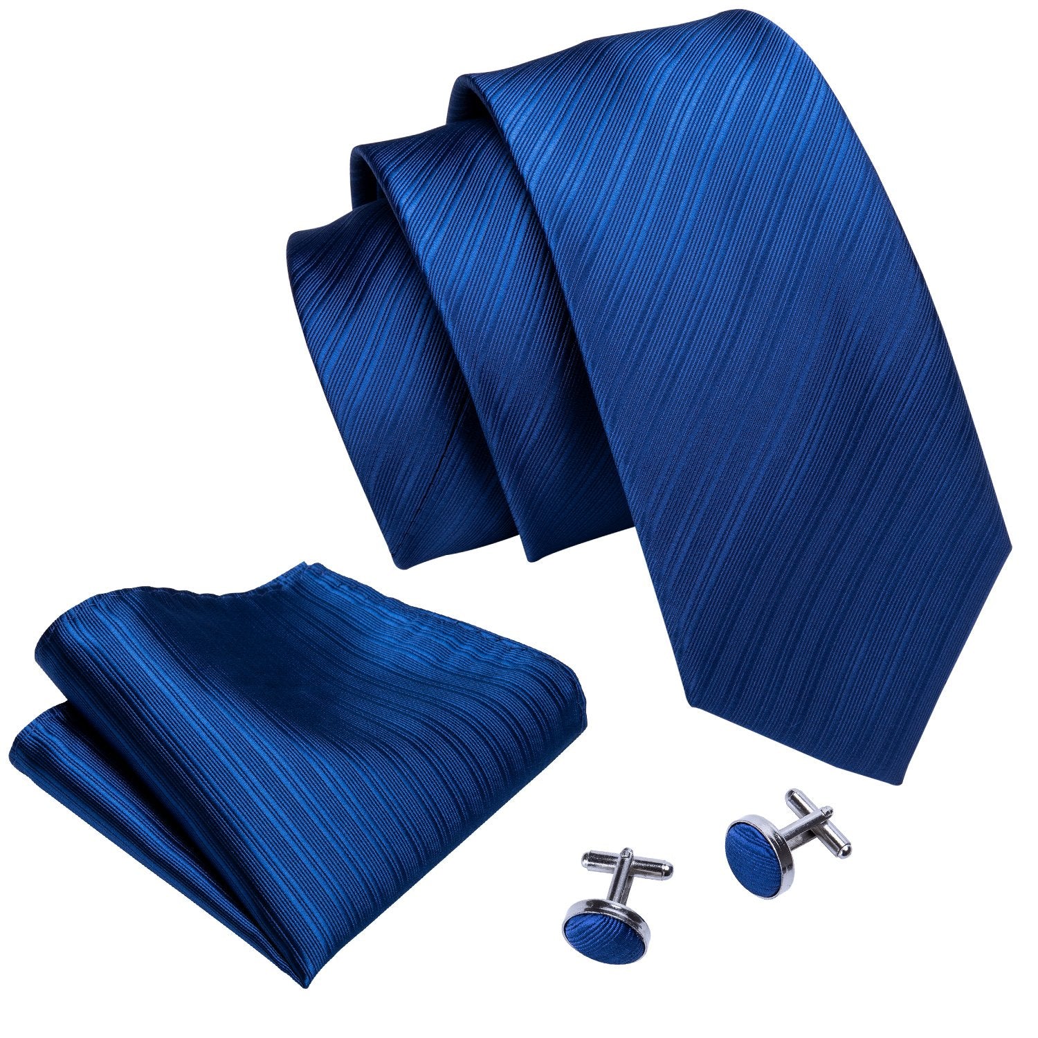 Barry. Wang Blue Striped Silk Men's Wedding Necktie Hanky Cufflinks Set