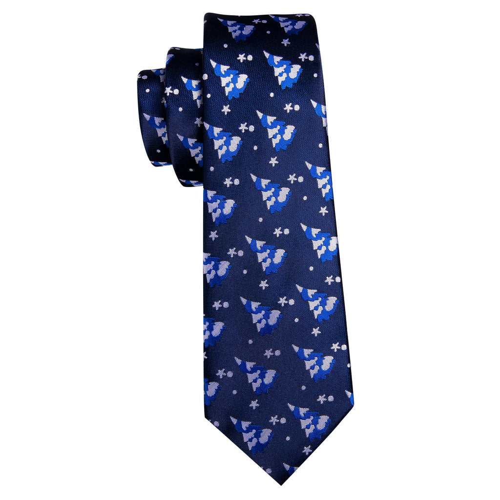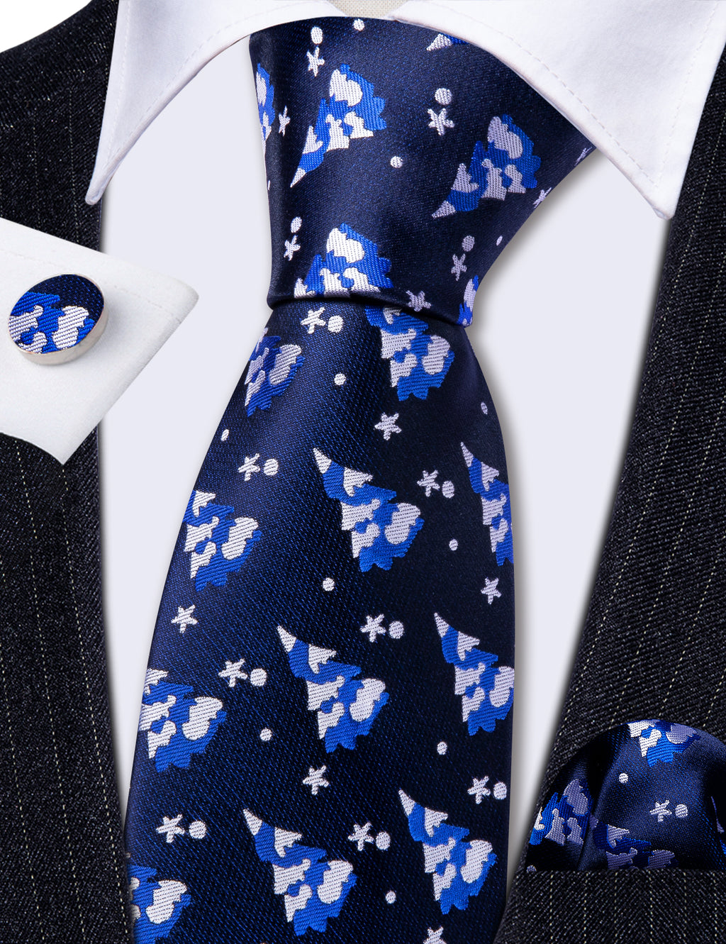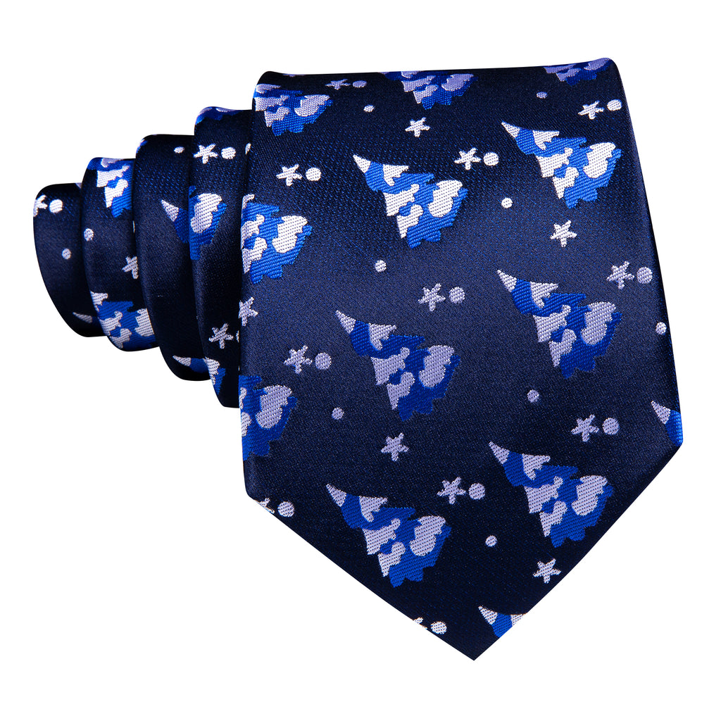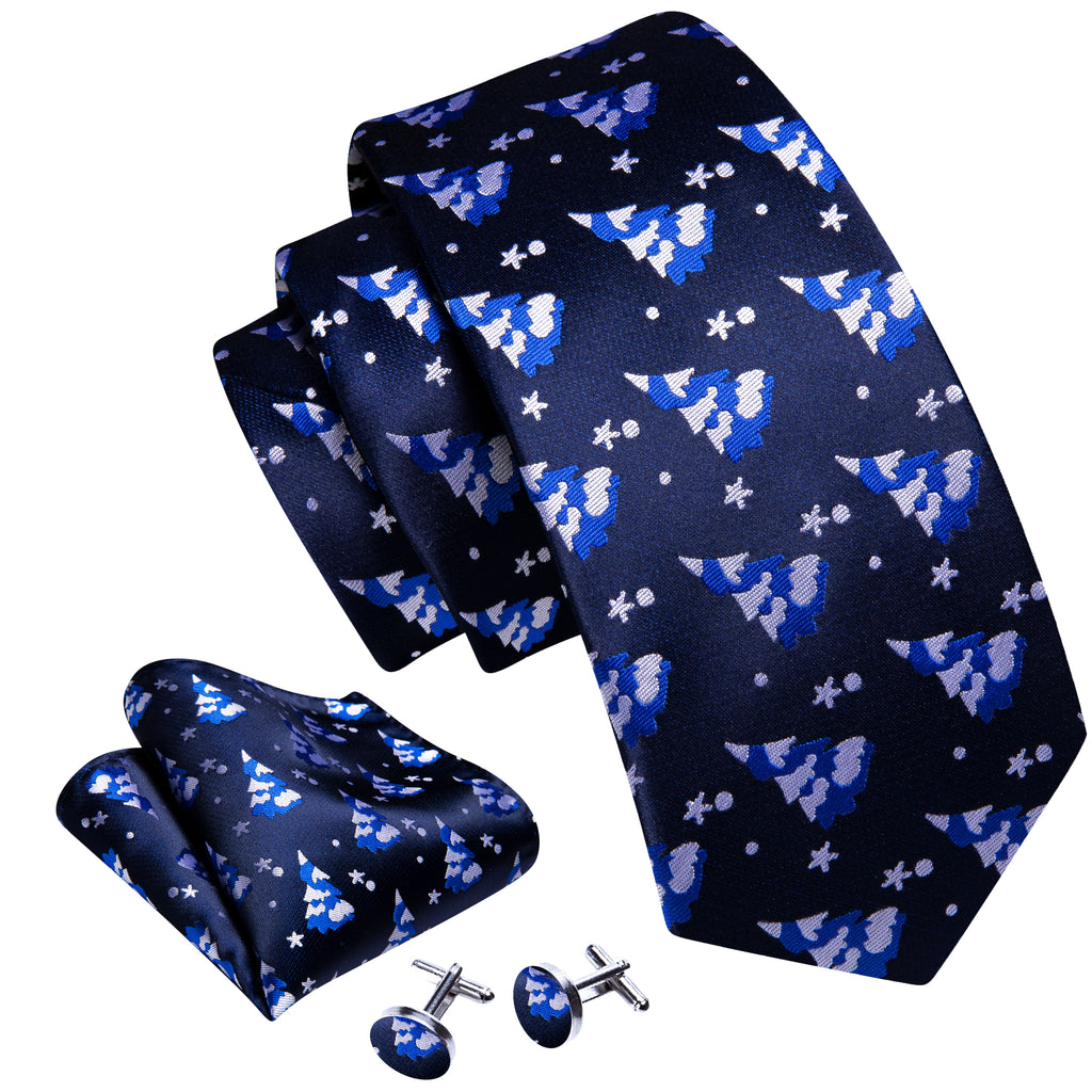 Barry. Wang Mens Holiday Navy Blue Tie Navy Blue Xmas Tree Necktie Pocket Square Cufflinks Set