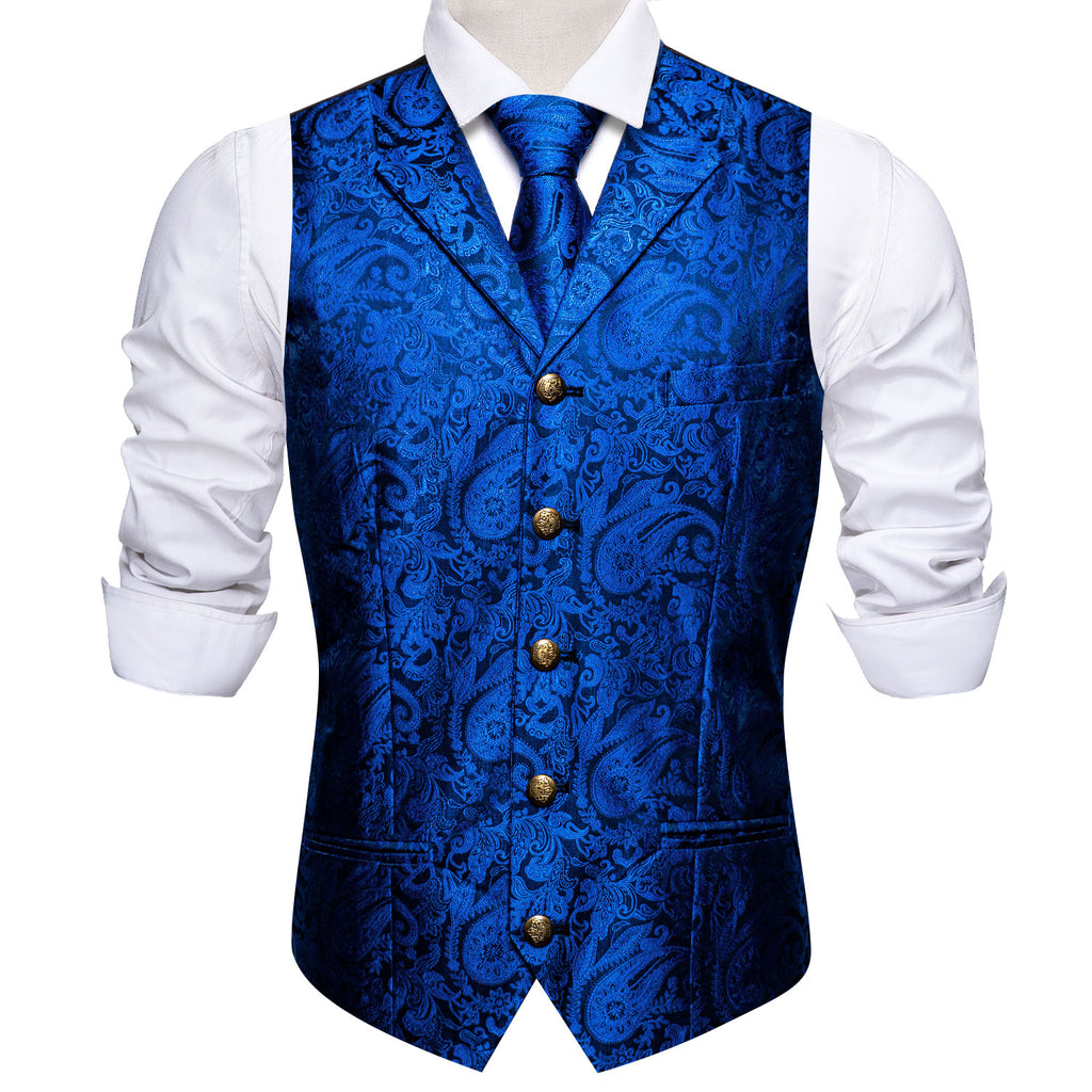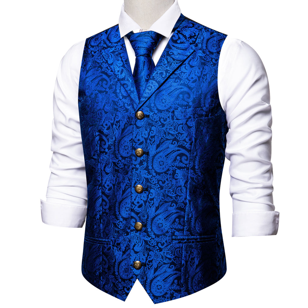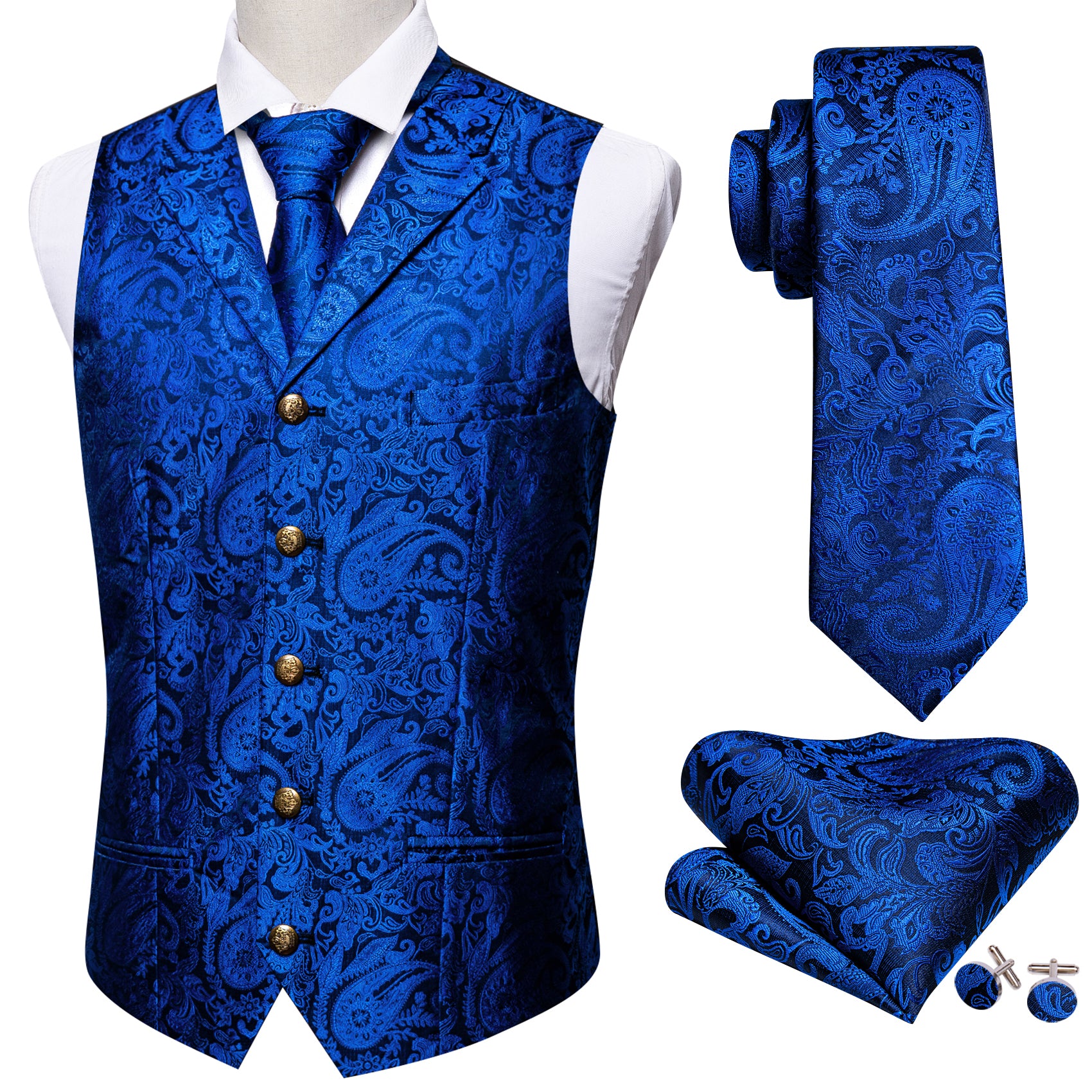 Barry. Wang Royal Blue Collar Vest Paisley Formal Suit Waistcoat Tie Hanky Cufflinks Set