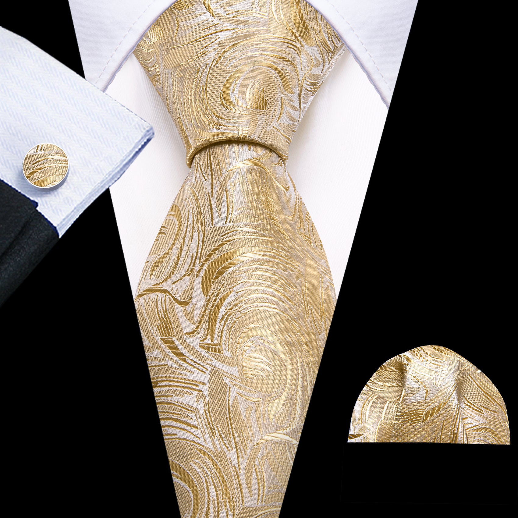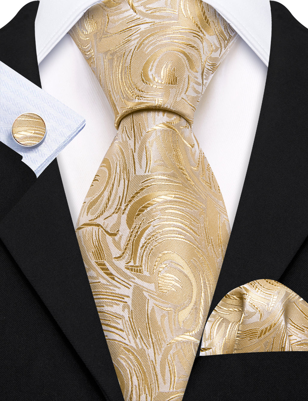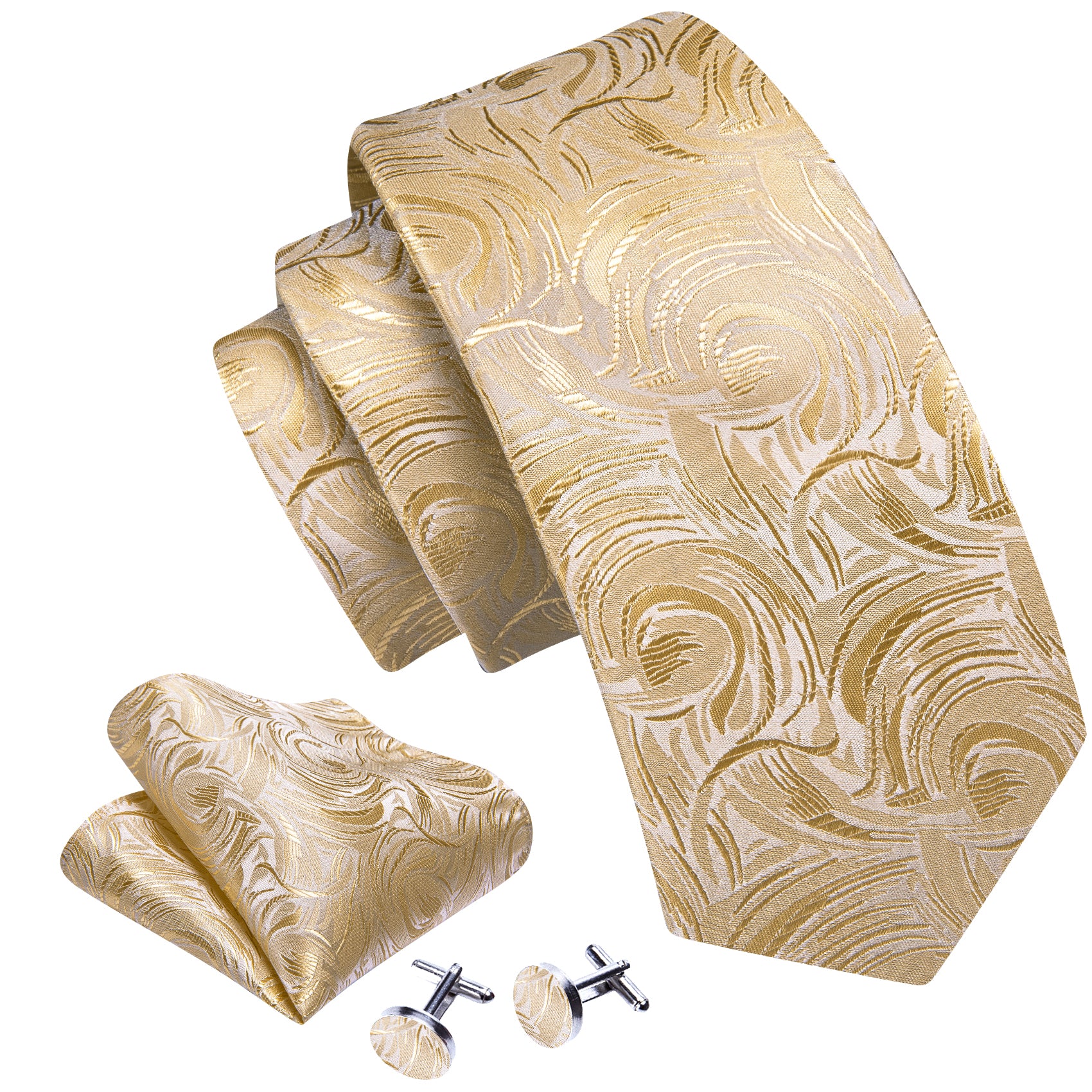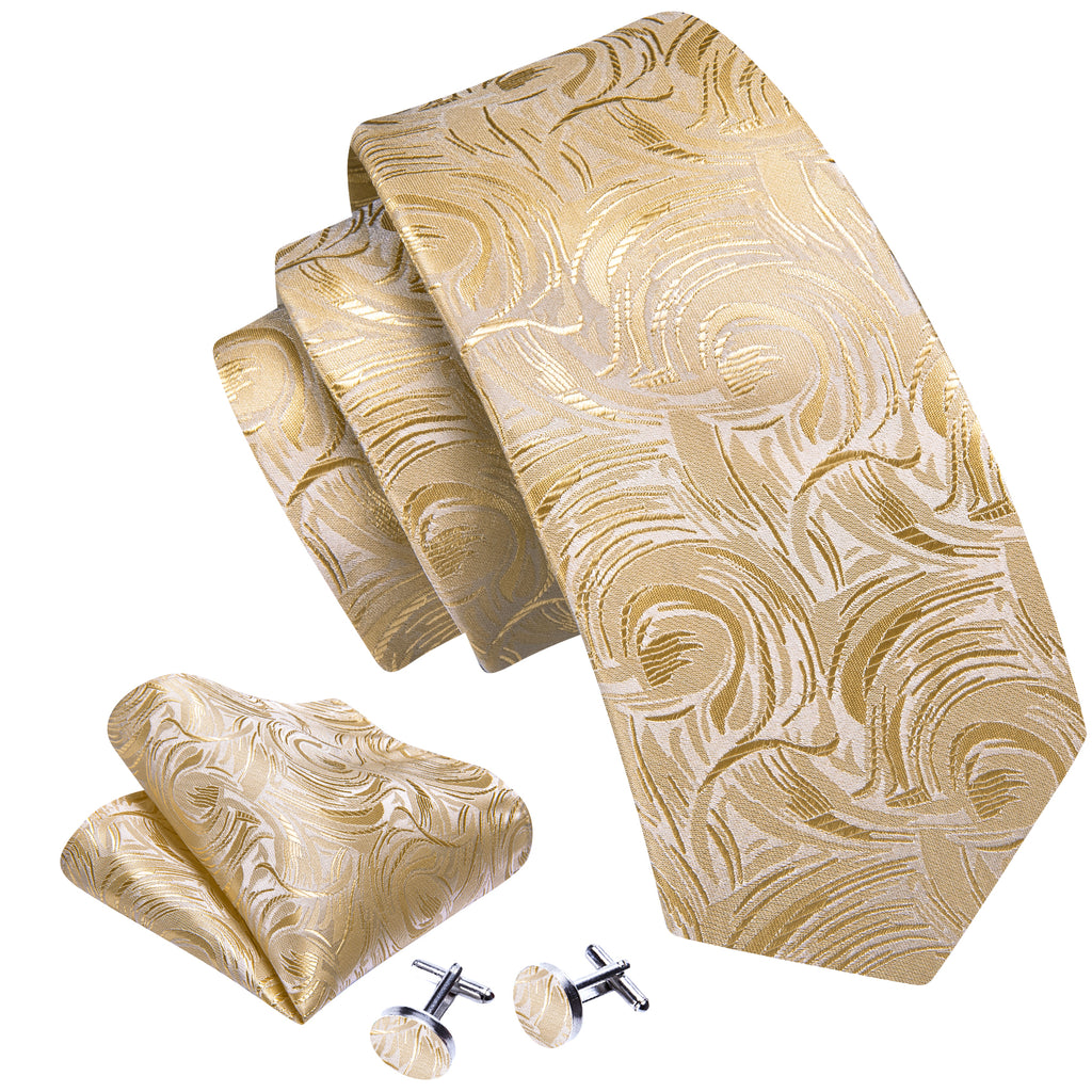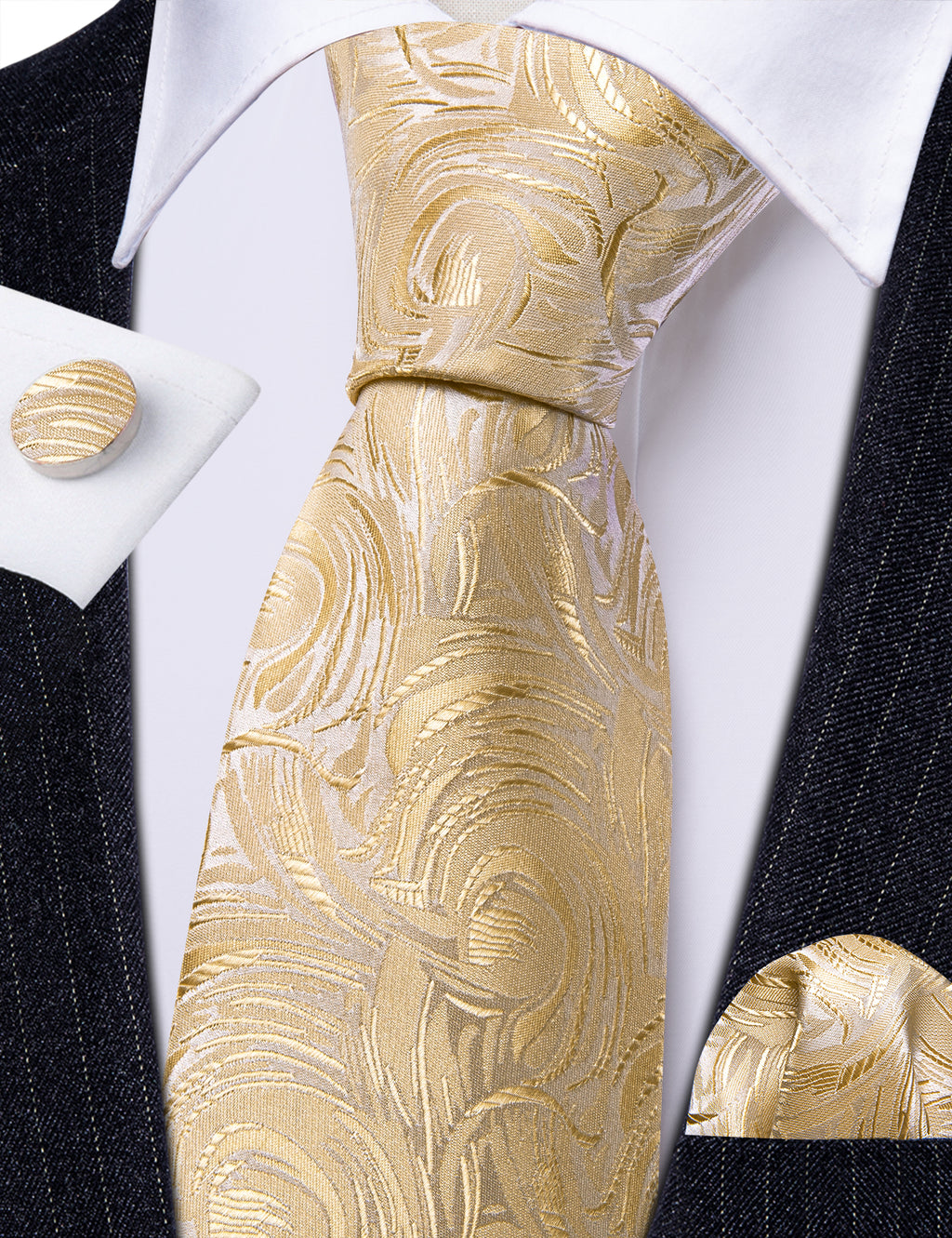 Barry. Wang Bisque Yellow Floral Silk Tie Handkerchief Cufflinks Set