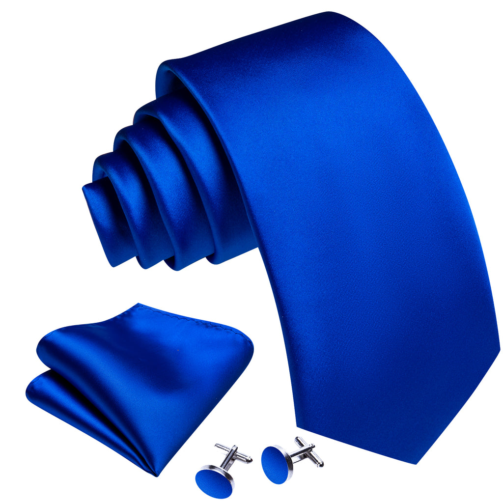 Barry. Wang Cerulean Blue Solid Silk Tie Pocket Square Cufflinks Set