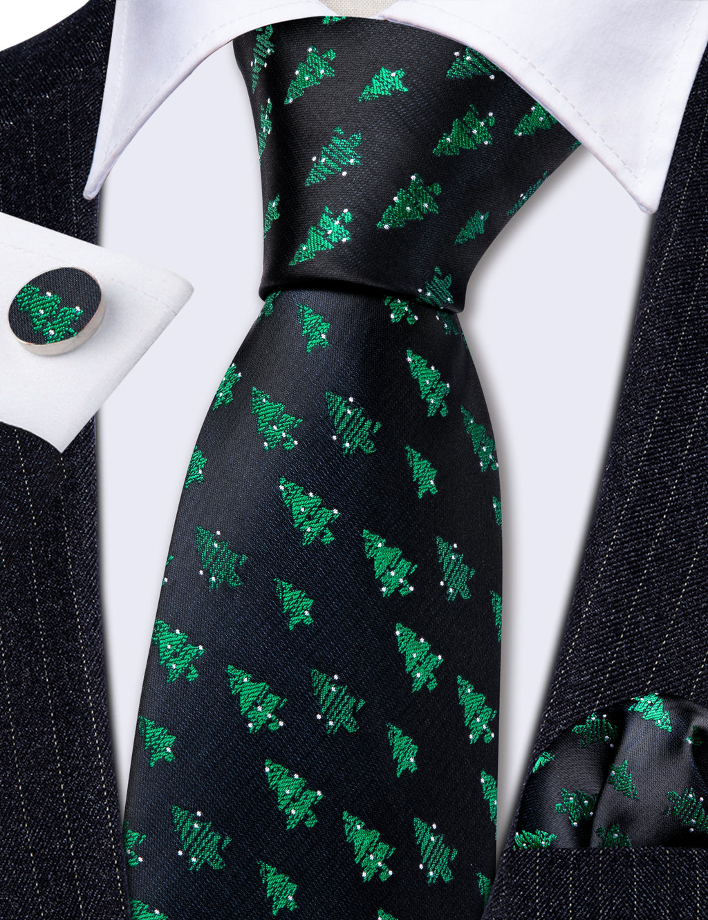 Barry. Wang Xmas Tree Tie Mens Holiday Black Suit Necktie Hanky Cufflinks Set
