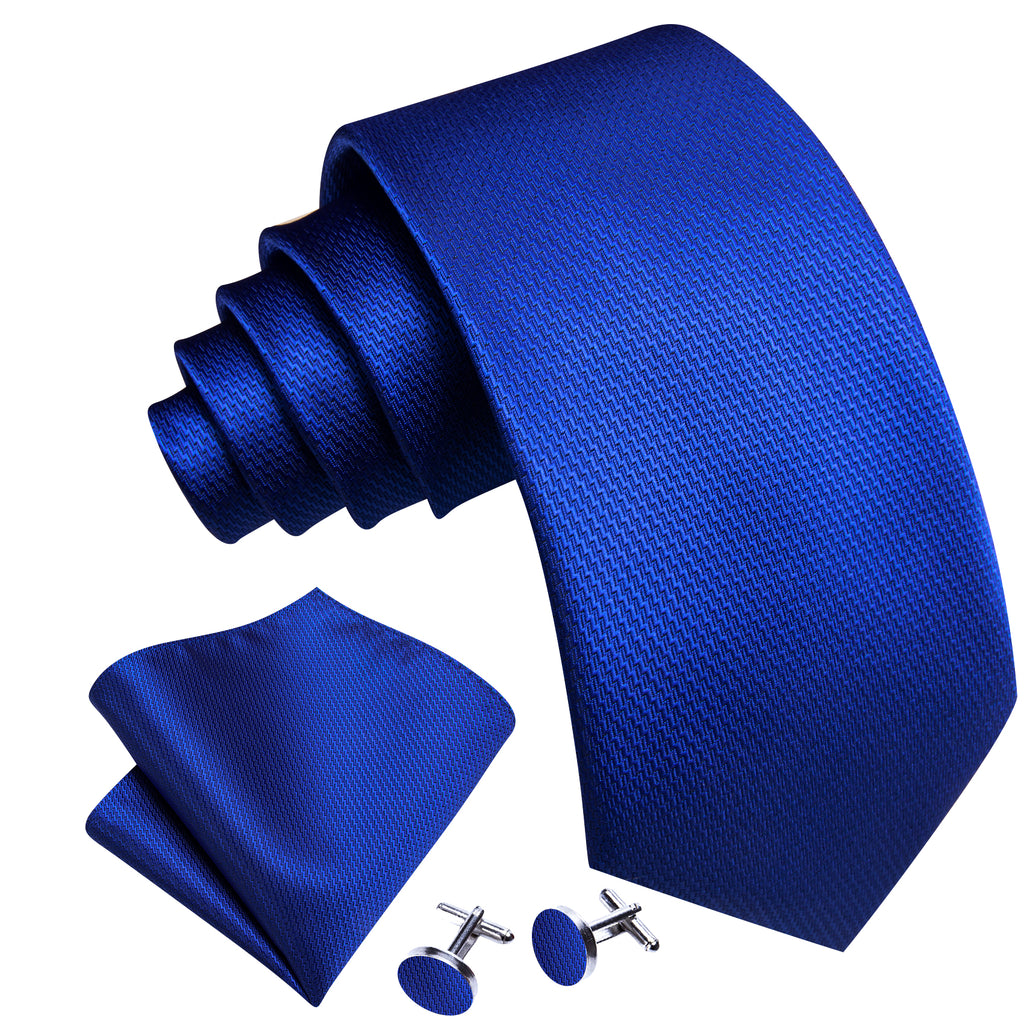 Barry. Wang Cobalt Blue Solid Silk Men's Tie Handkerchief Cufflinks Set