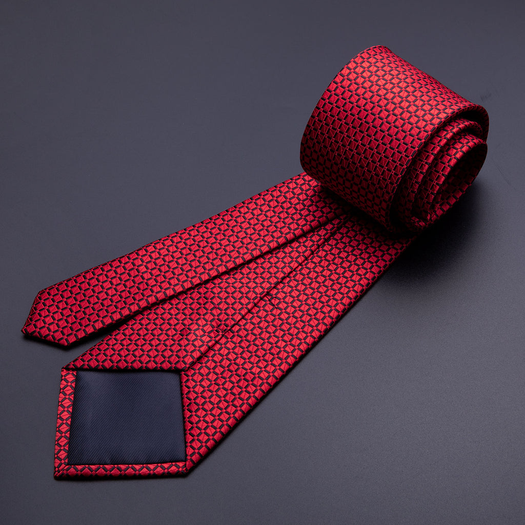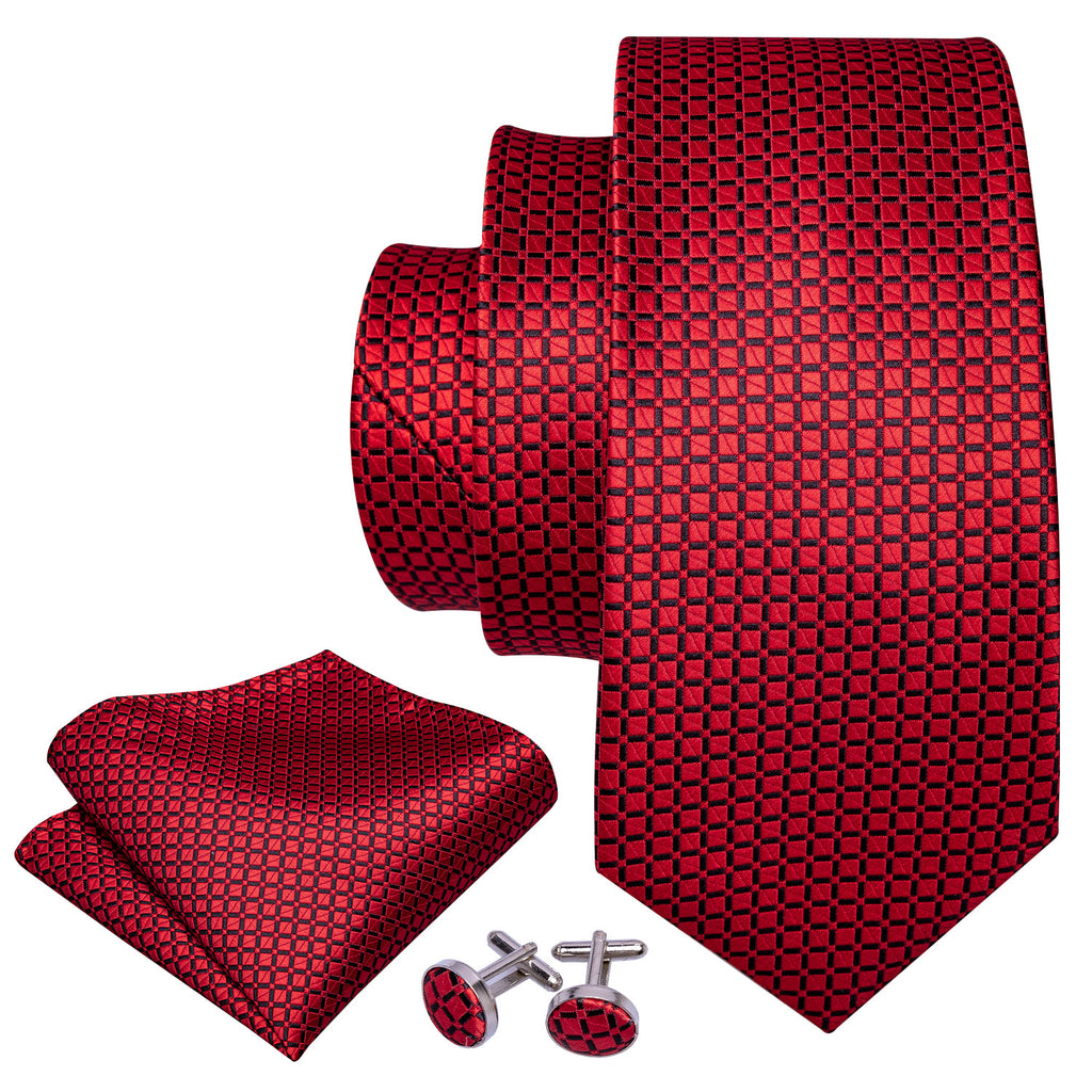 Barry. Wang Neck Tie Fresh Red Plaid Tie Pocket Square Cufflinks Set