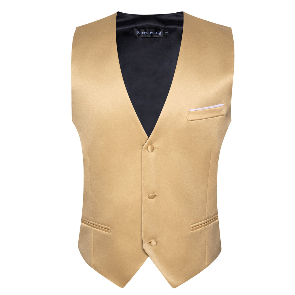 Barry. Wang Mens Gold Suit Vest Solid V-neck Vest Necktie Bowtie Pocket Square Cufflinks Set