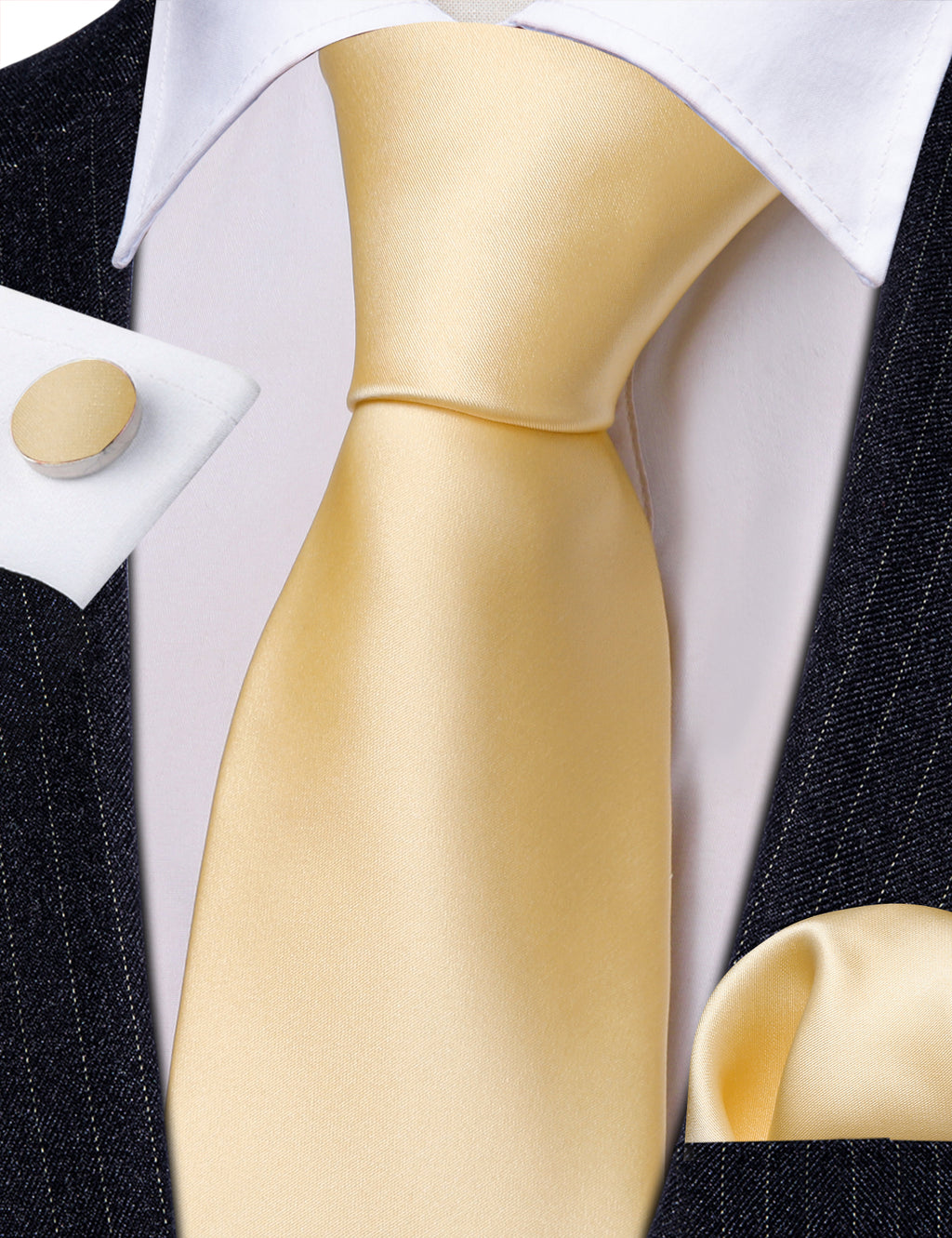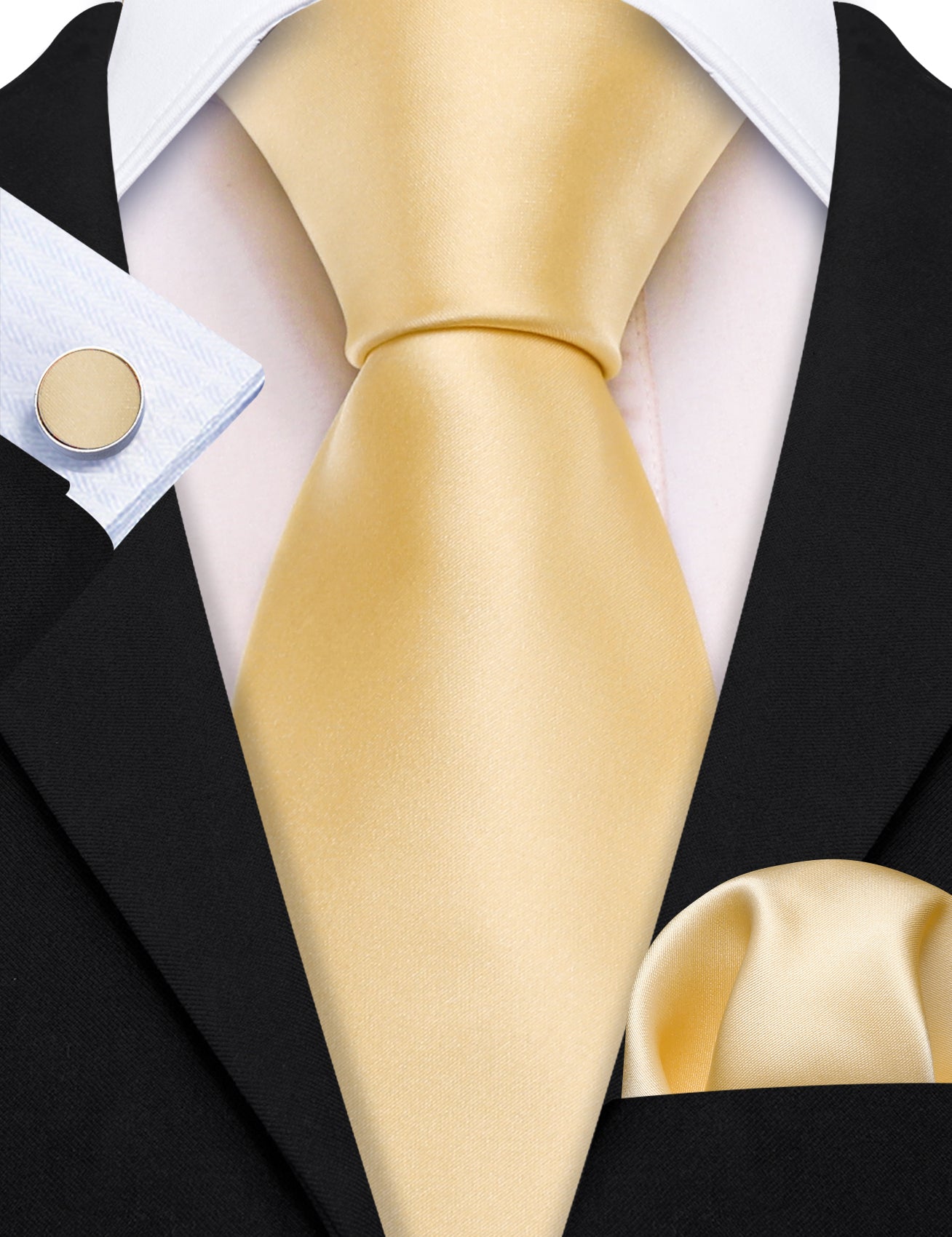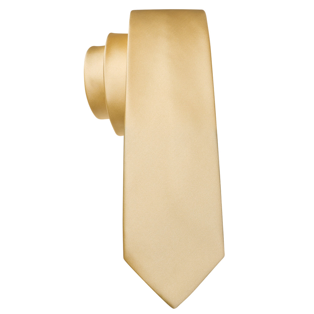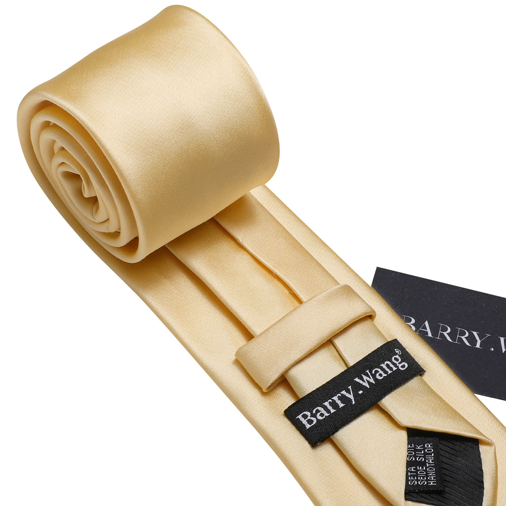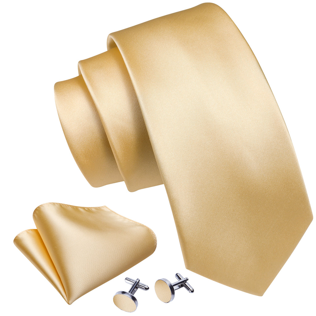 Barry. Wang Wheat Gold Solid Silk Neck Tie Handkerchief Cufflinks Set