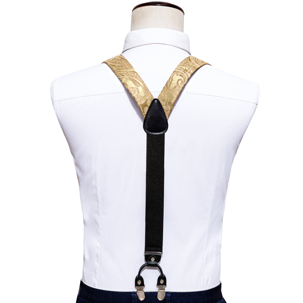 Barry. Wang Golden Paisley Y Back Adjustable Bow Tie Suspenders Set