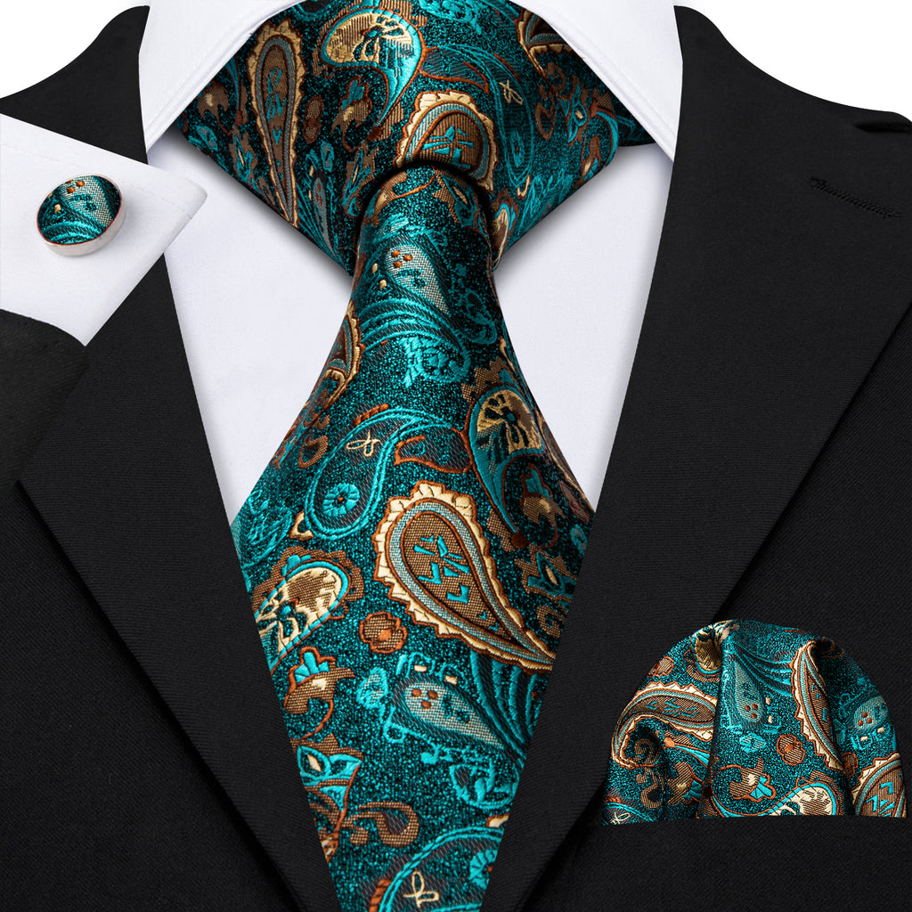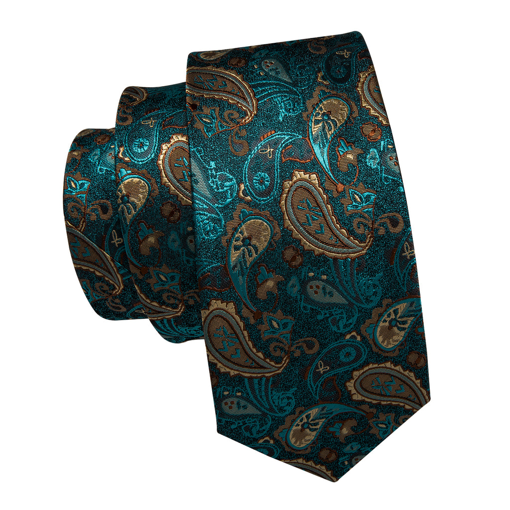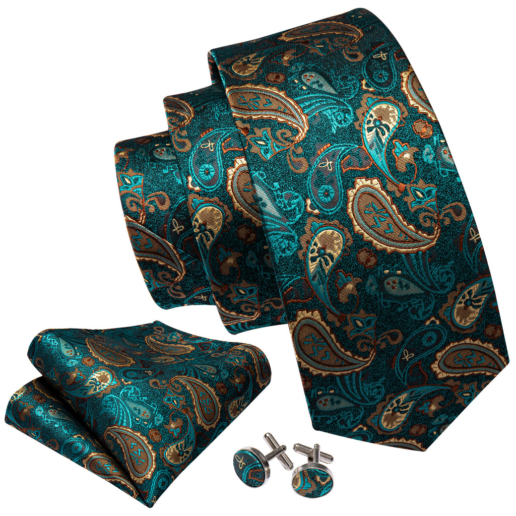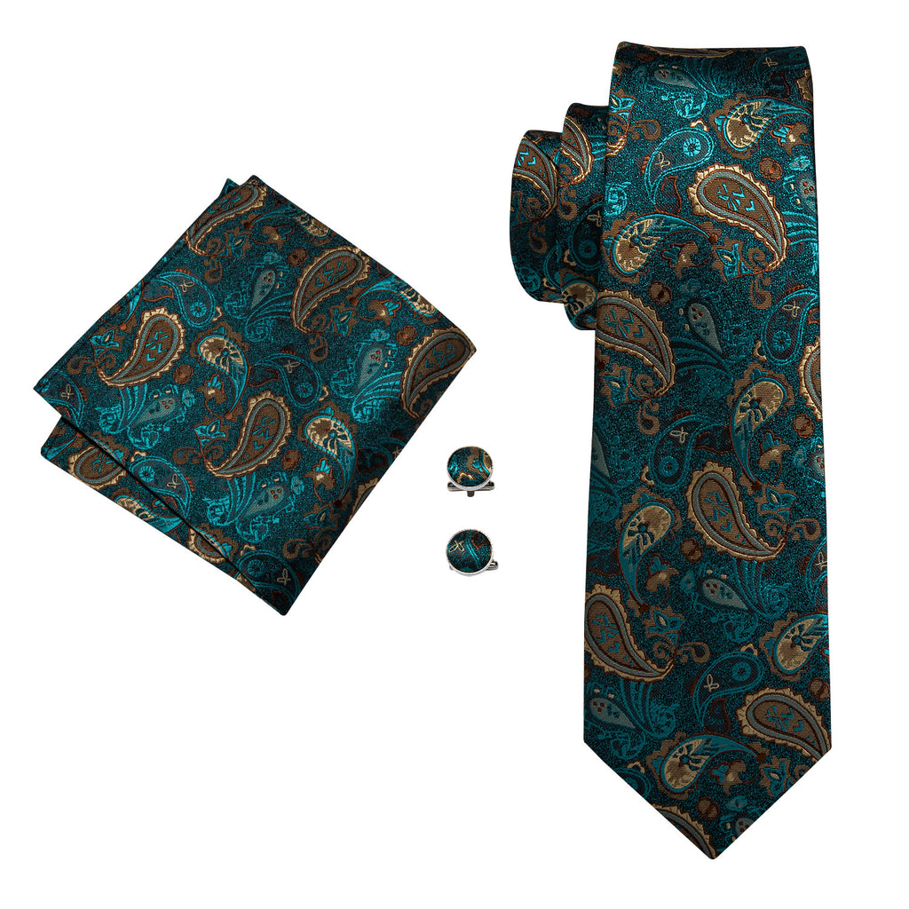 Barry. Wang Green Brown Paisley Tie Hanky Cufflinks Set
