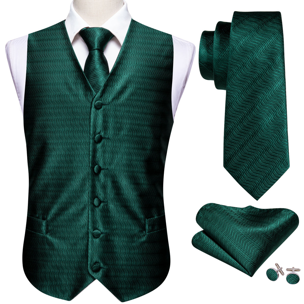 Barry. Wang Mens Hunter Green Vest Formal Solid V-Neck Suit Waistcoat Tie Hanky Cufflinks Set