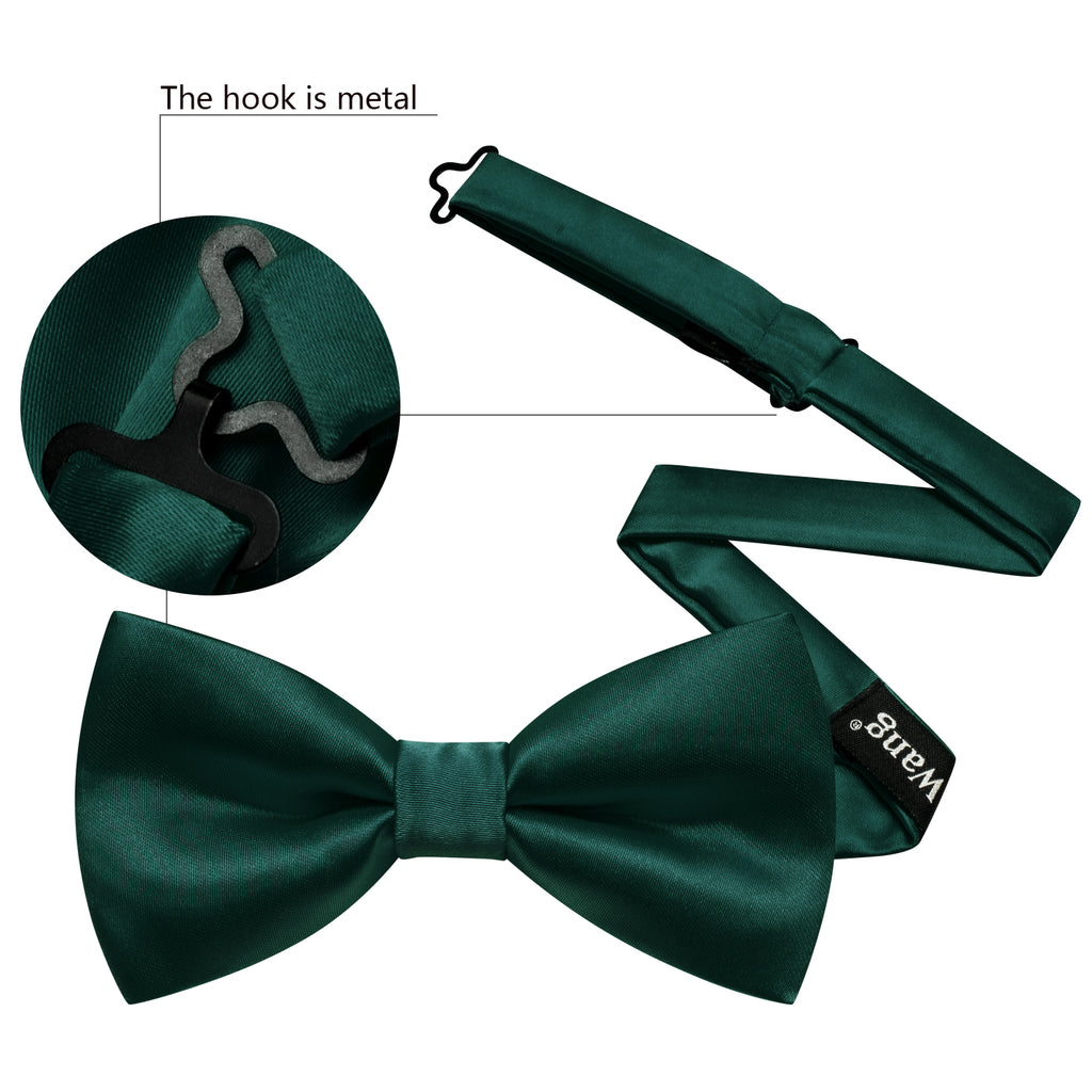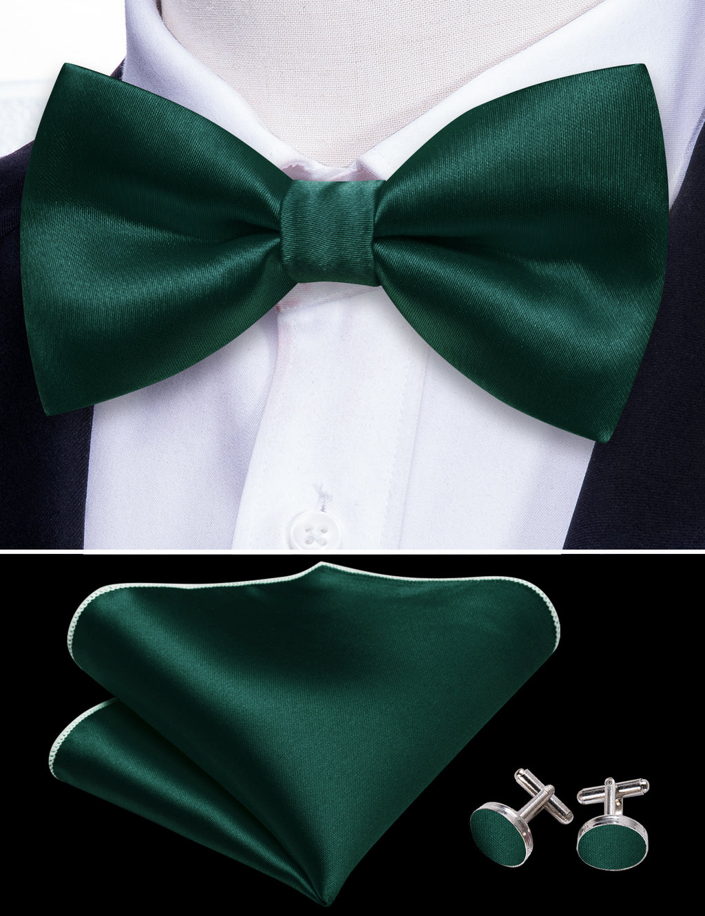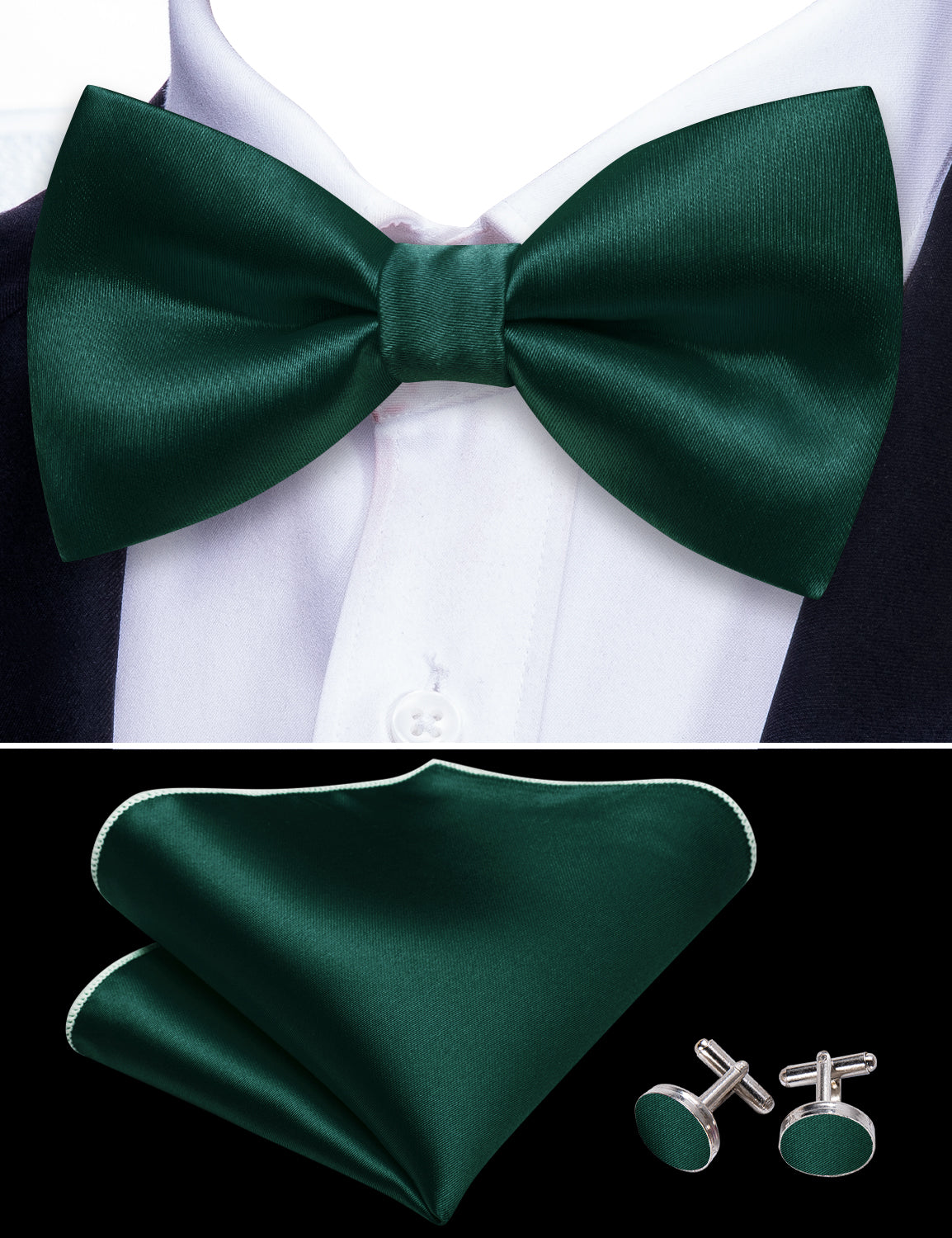 Barry. Wang Hunter Green Bow Tie Solid Pre-tied Men's Wedding Party Bowtie Pocket Square Cufflinks Set