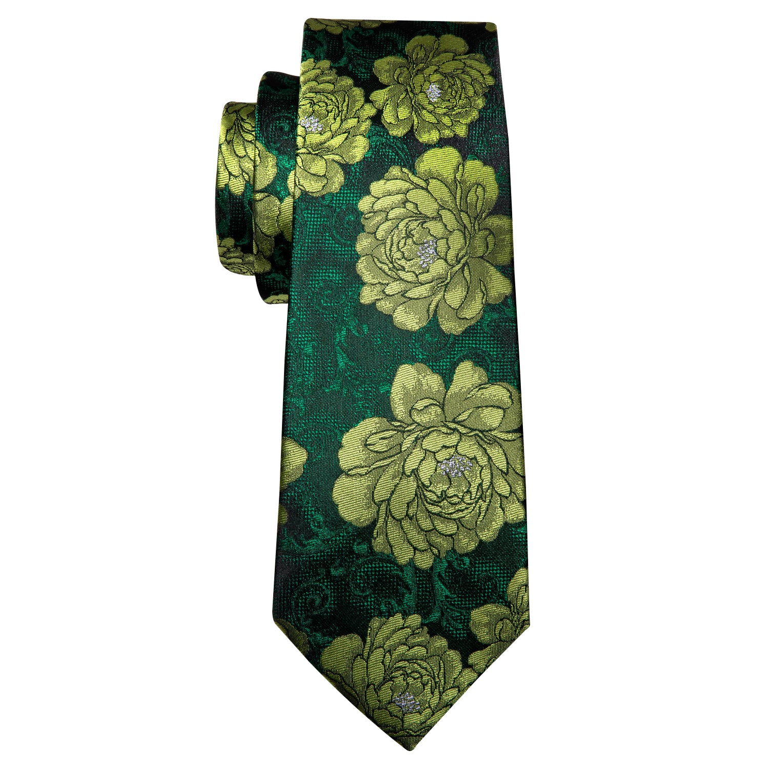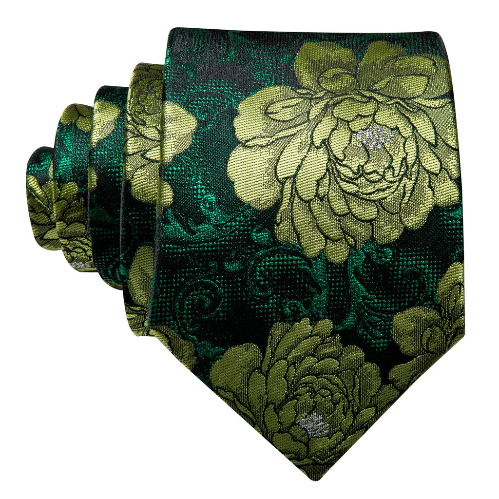 Barry. Wang Dark Green Floral Tie Tie Hanky Cufflinks Set
