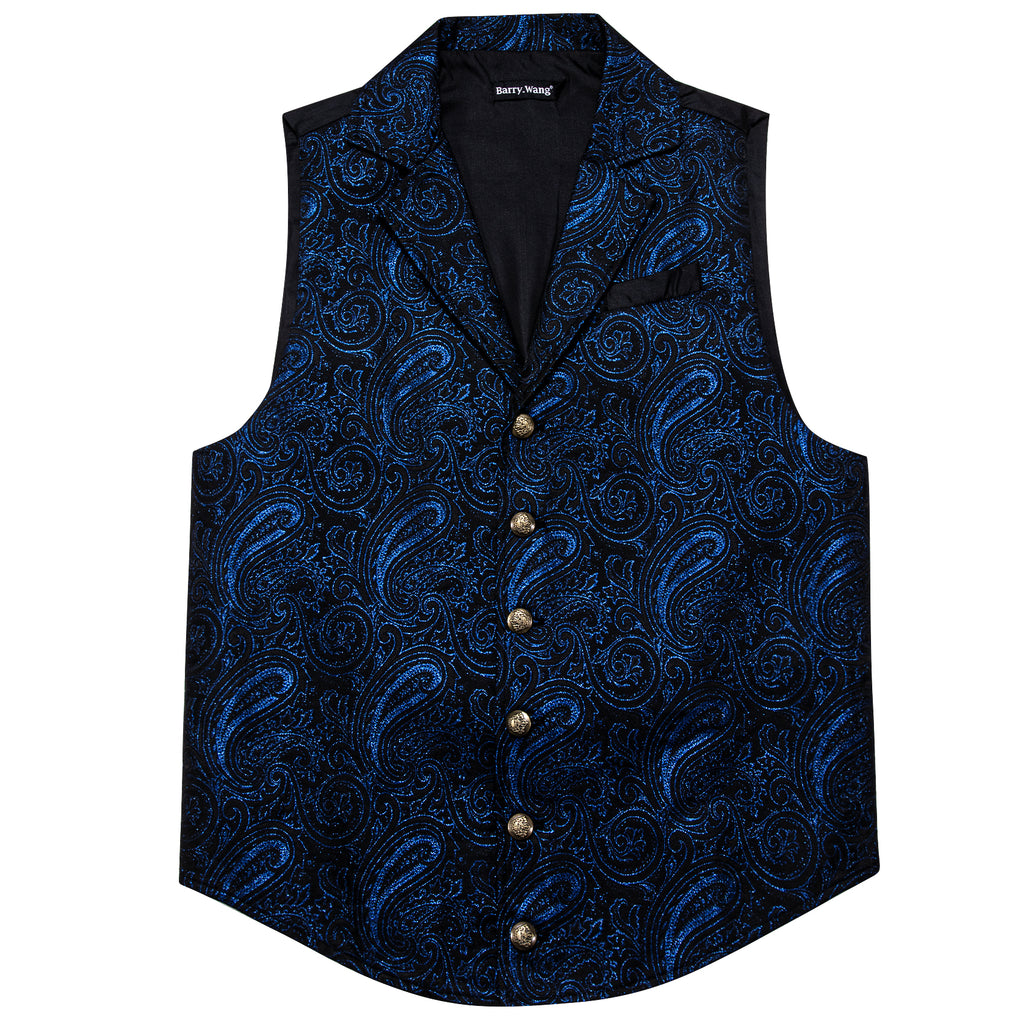 Barry. Wang Mens Navy Blue Victorian Vest Paisley Tailored Collar Waistcoat