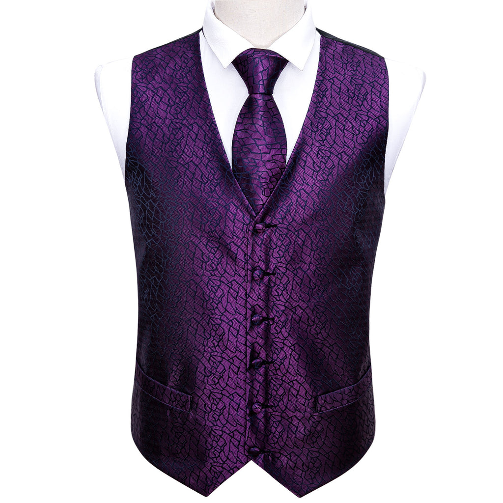 Barry. Wang Grape Purple Vest Suit 4PCS Geometric Tuxedo Vest Necktie Hanky Cufflinks Set
