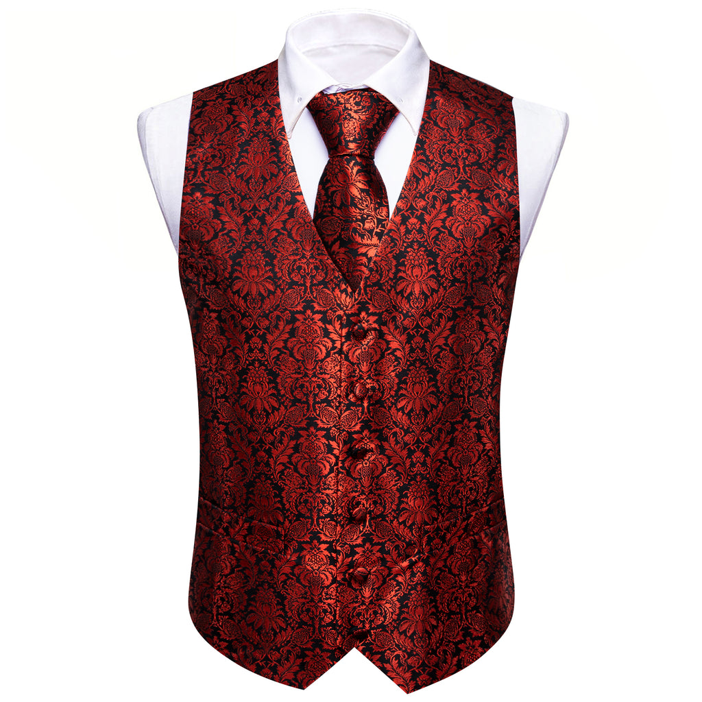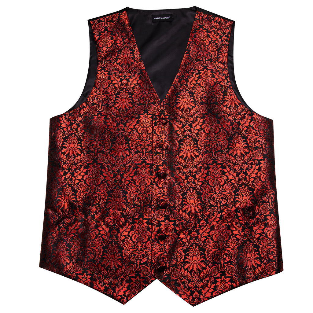 Barry. Wang Floral Suit Vest Formal Burgundy Waistcoat Necktie Handkercheif Cufflinks Set