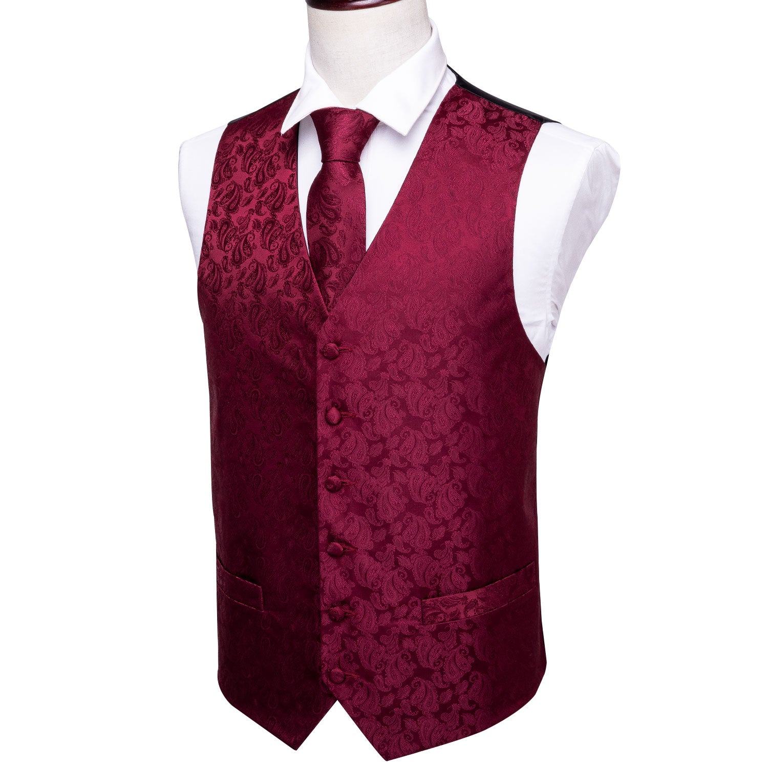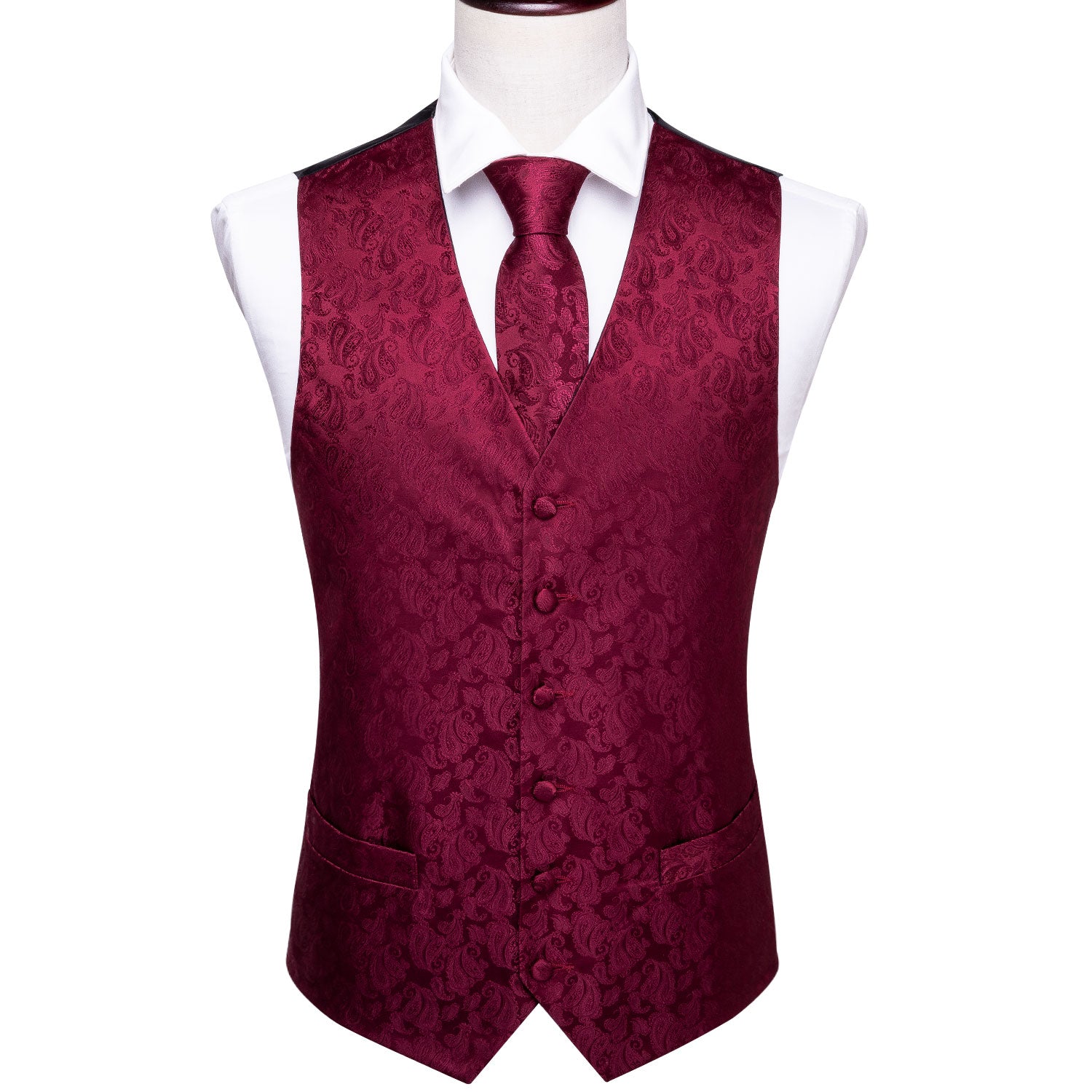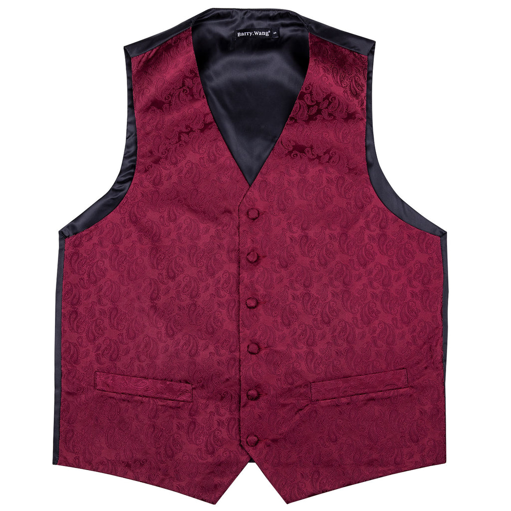 Barry. Wang Men's Red Paisley Silk Vest Necktie Pocket square Cufflinks