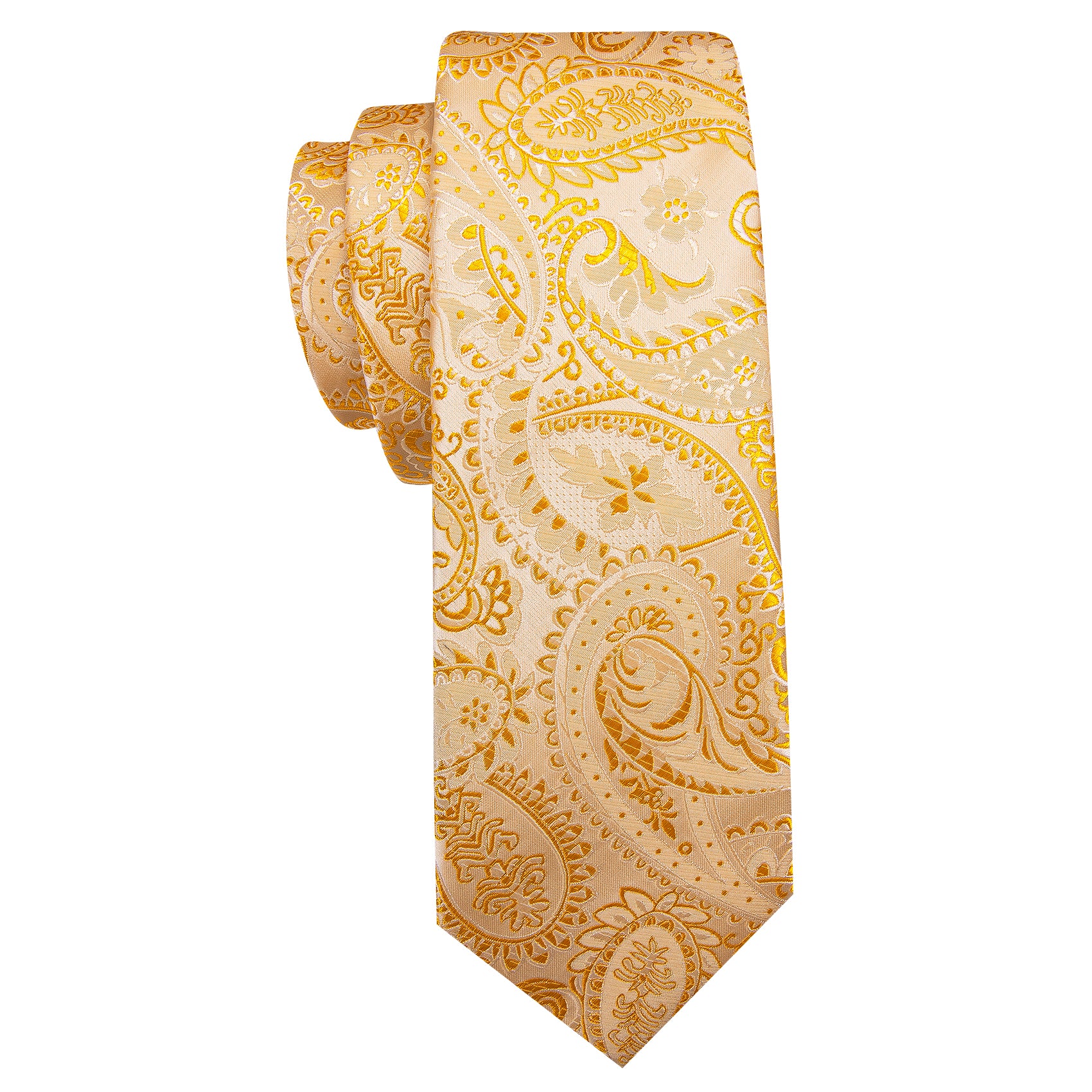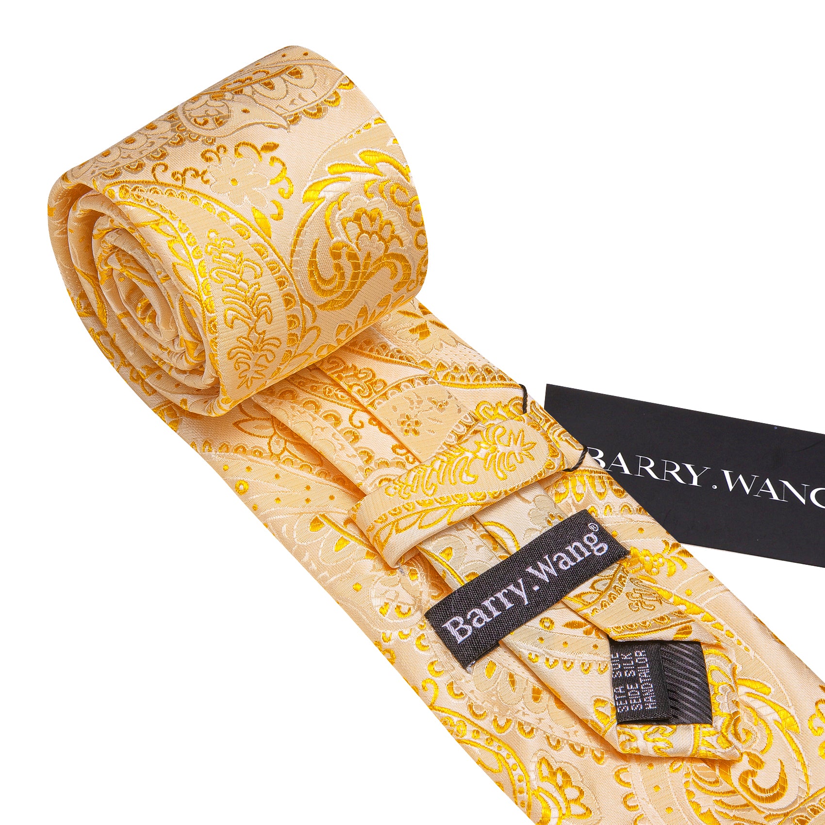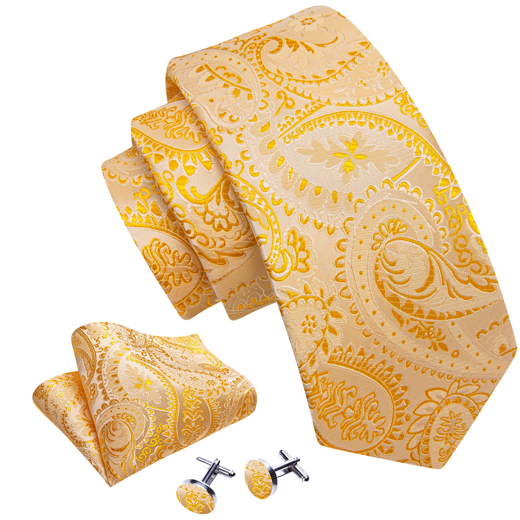 Barry. Wang Light Orange Silver Paisley Tie Handkerchief Cufflinks Set
