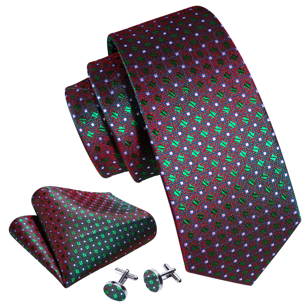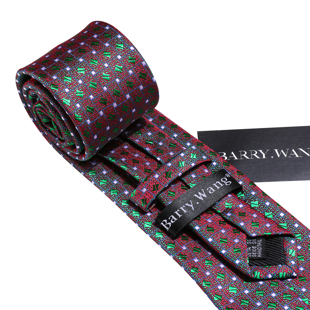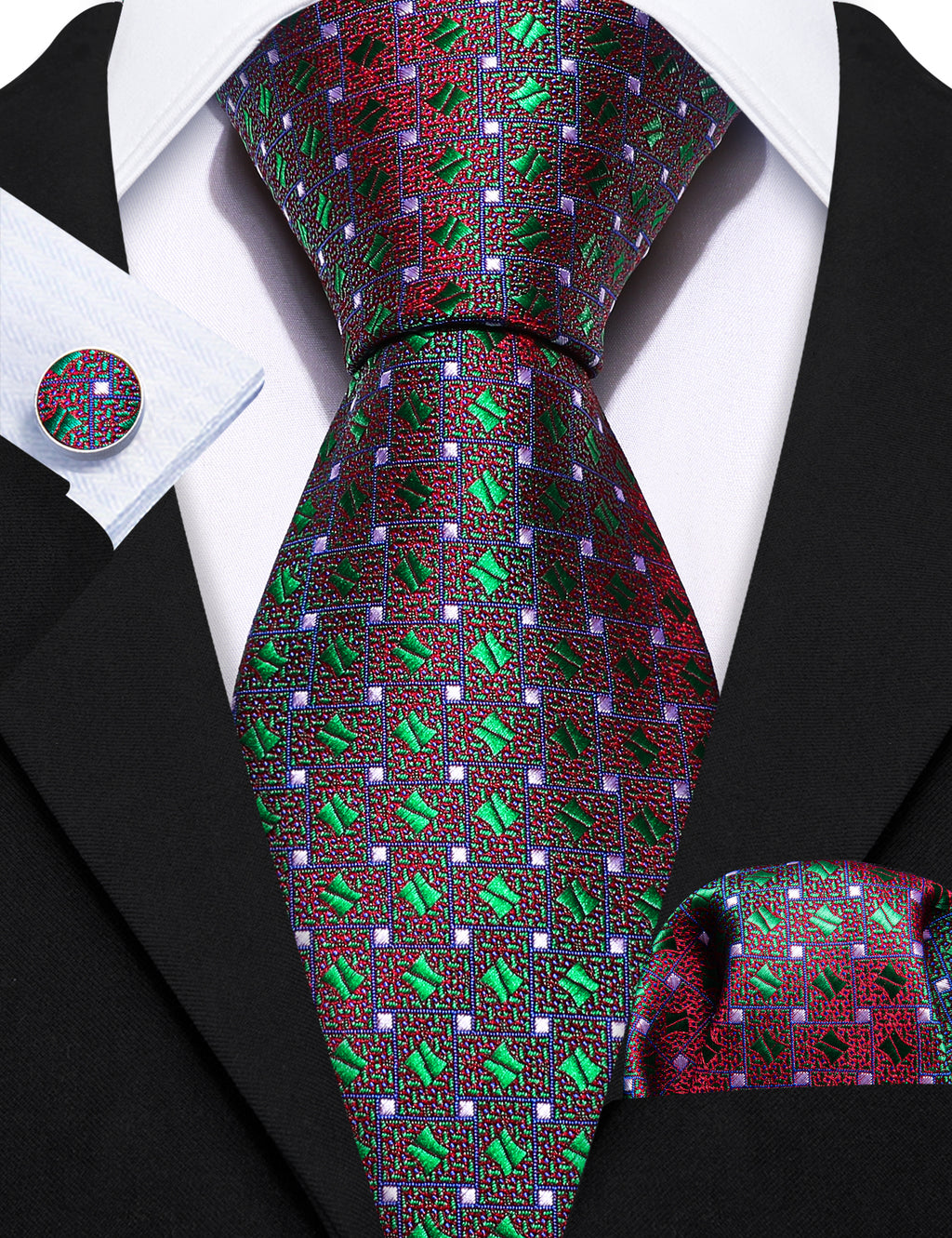 Barry. Wang Novelty Green Red Floral Silk Men's Tie Hanky Cufflinks Set