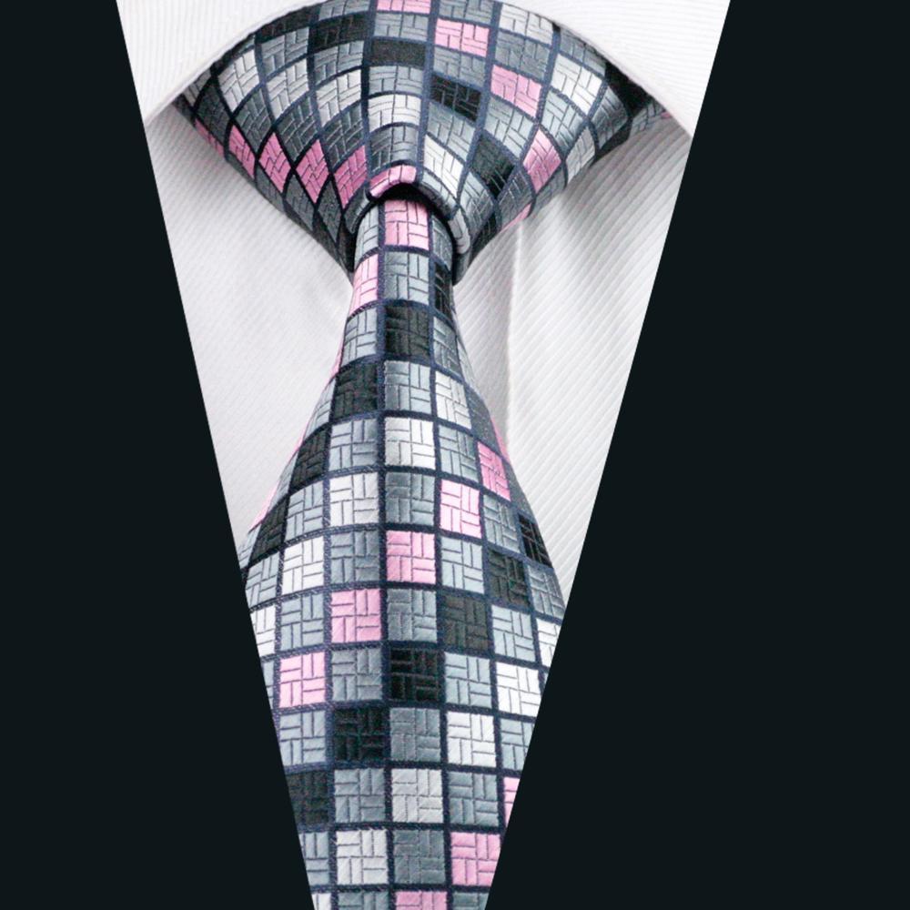 Barry. Wang Ties Pink Grey Plaid Silk Tie Pocket Square Cufflinks Set