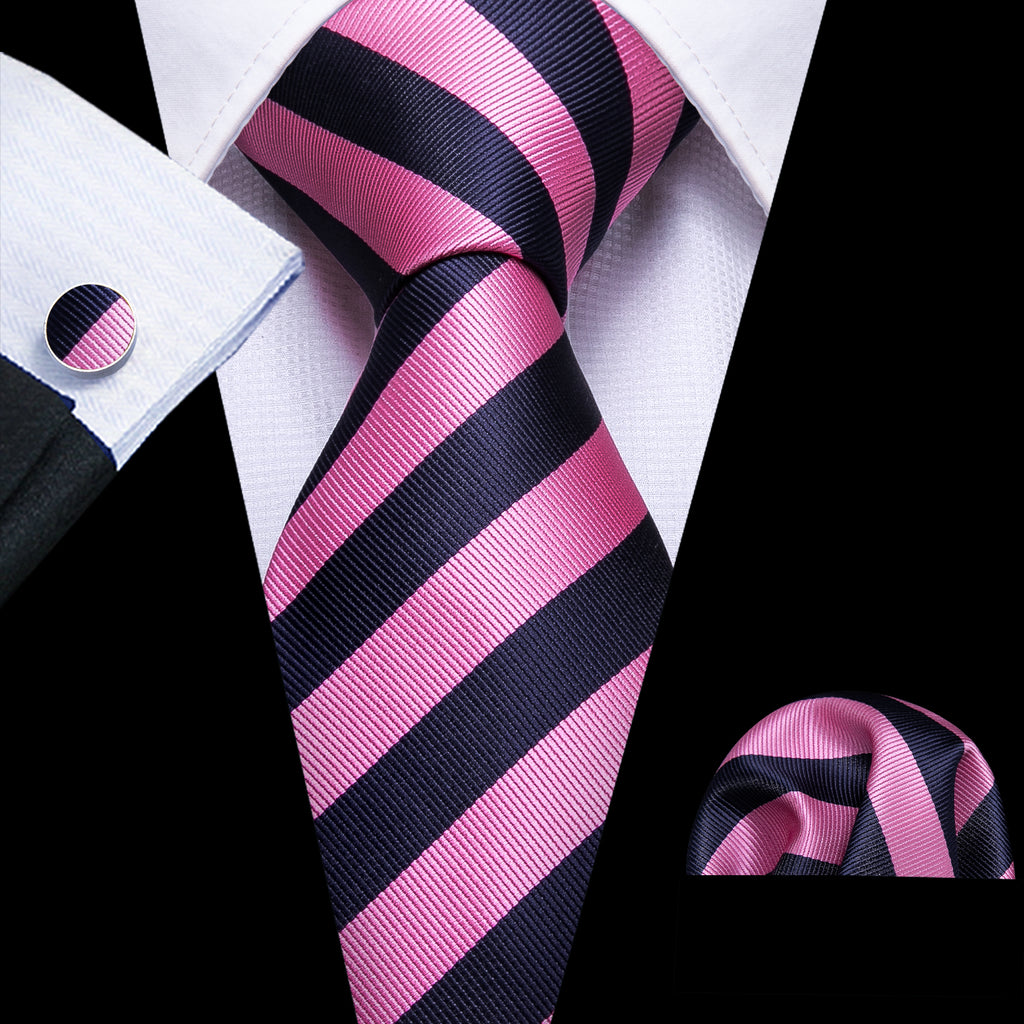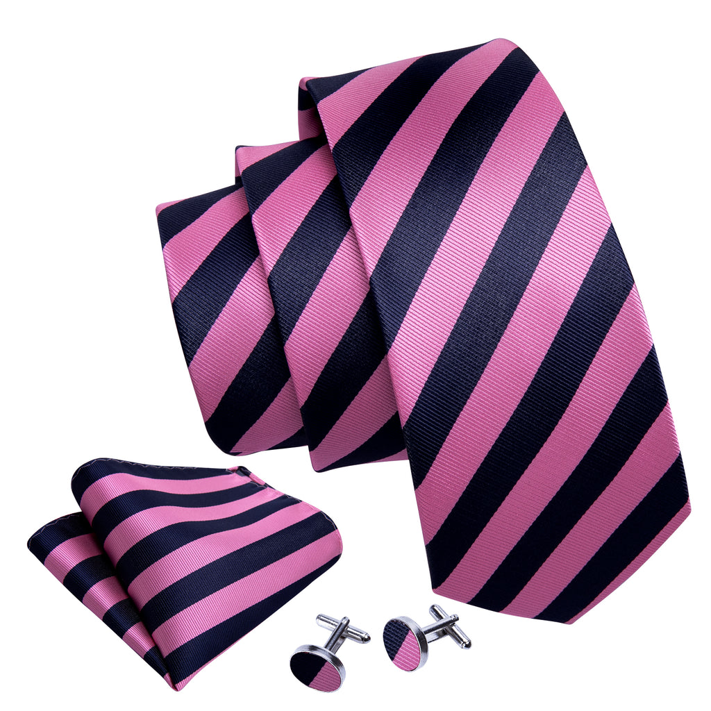 Barry. Wang Pink Striped Tie Pocket Square Cufflinks Set