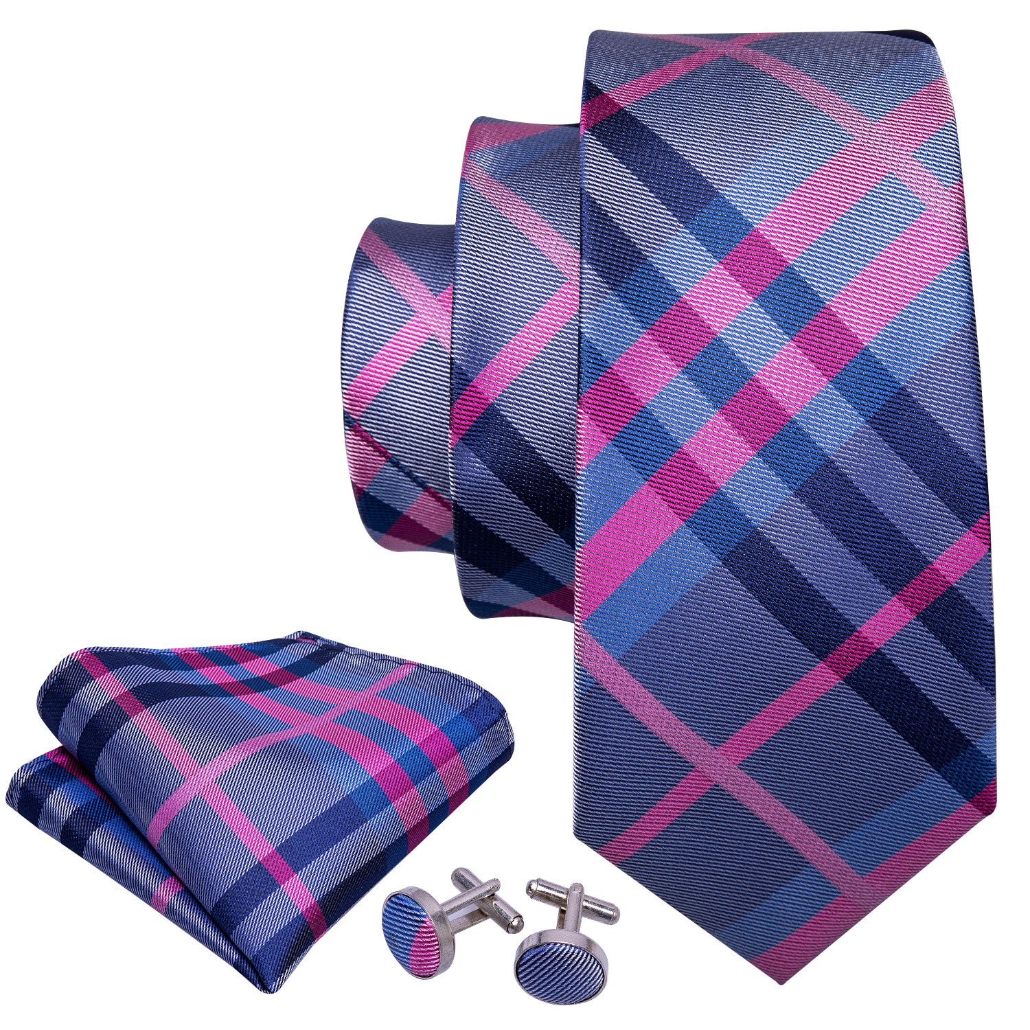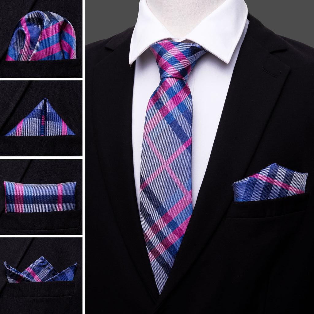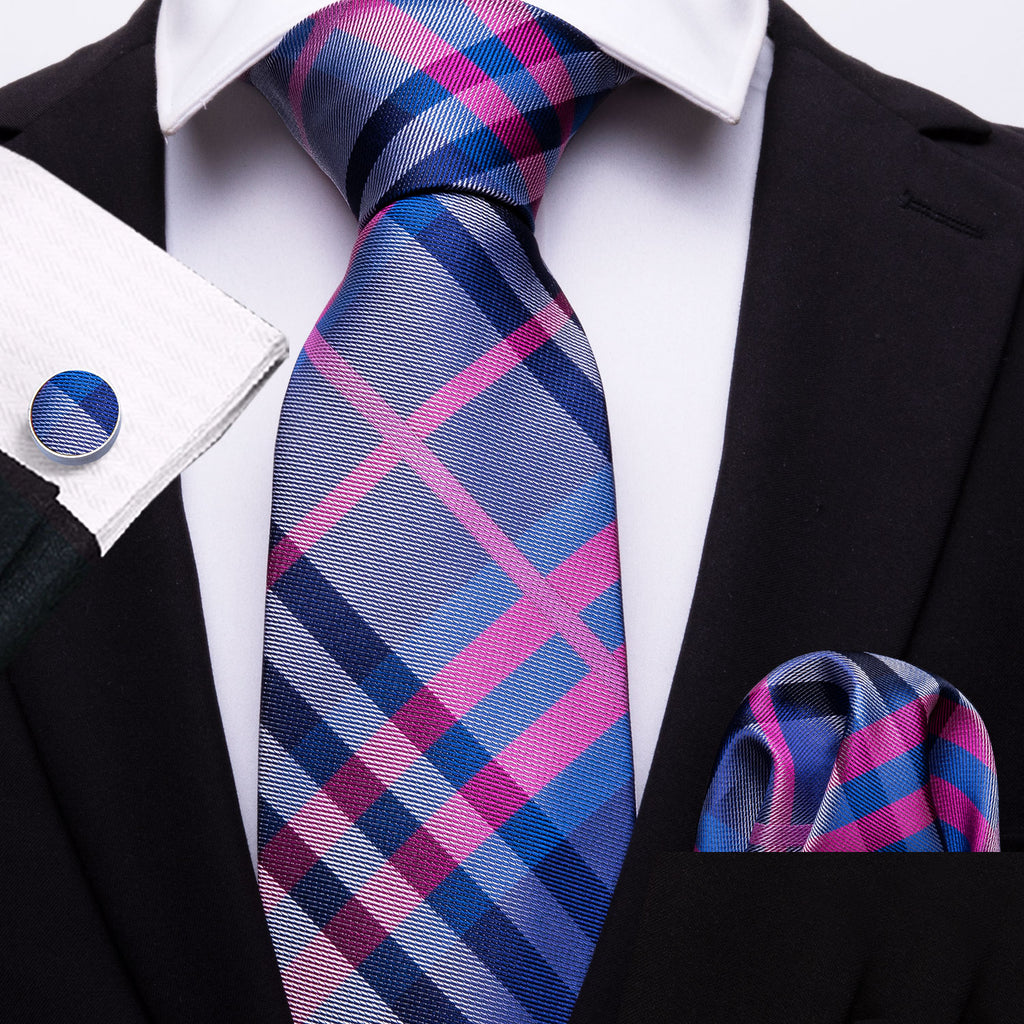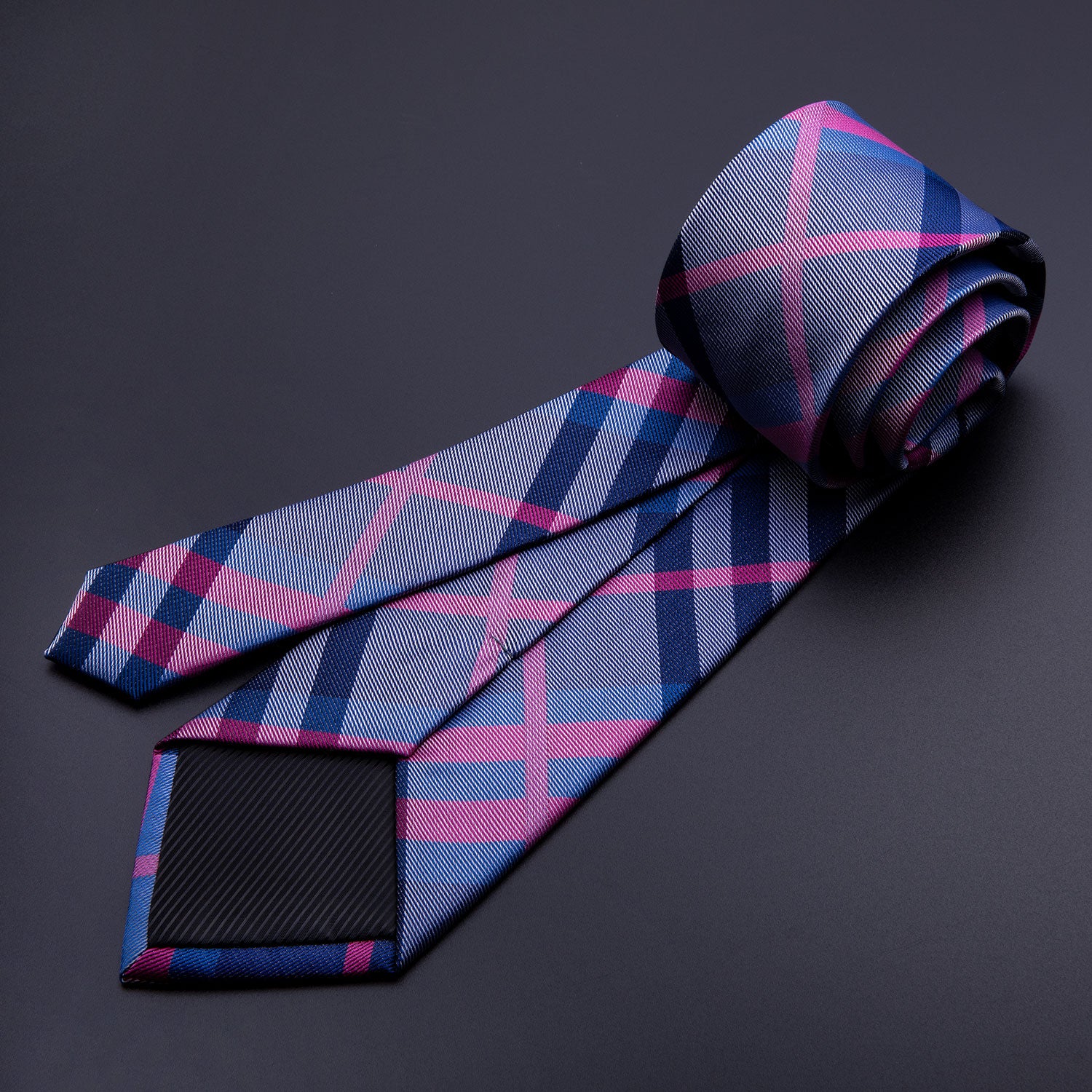 Barry. Wang Men Necktie Red Blue Stripe Tie Pocket Square Cufflinks Set