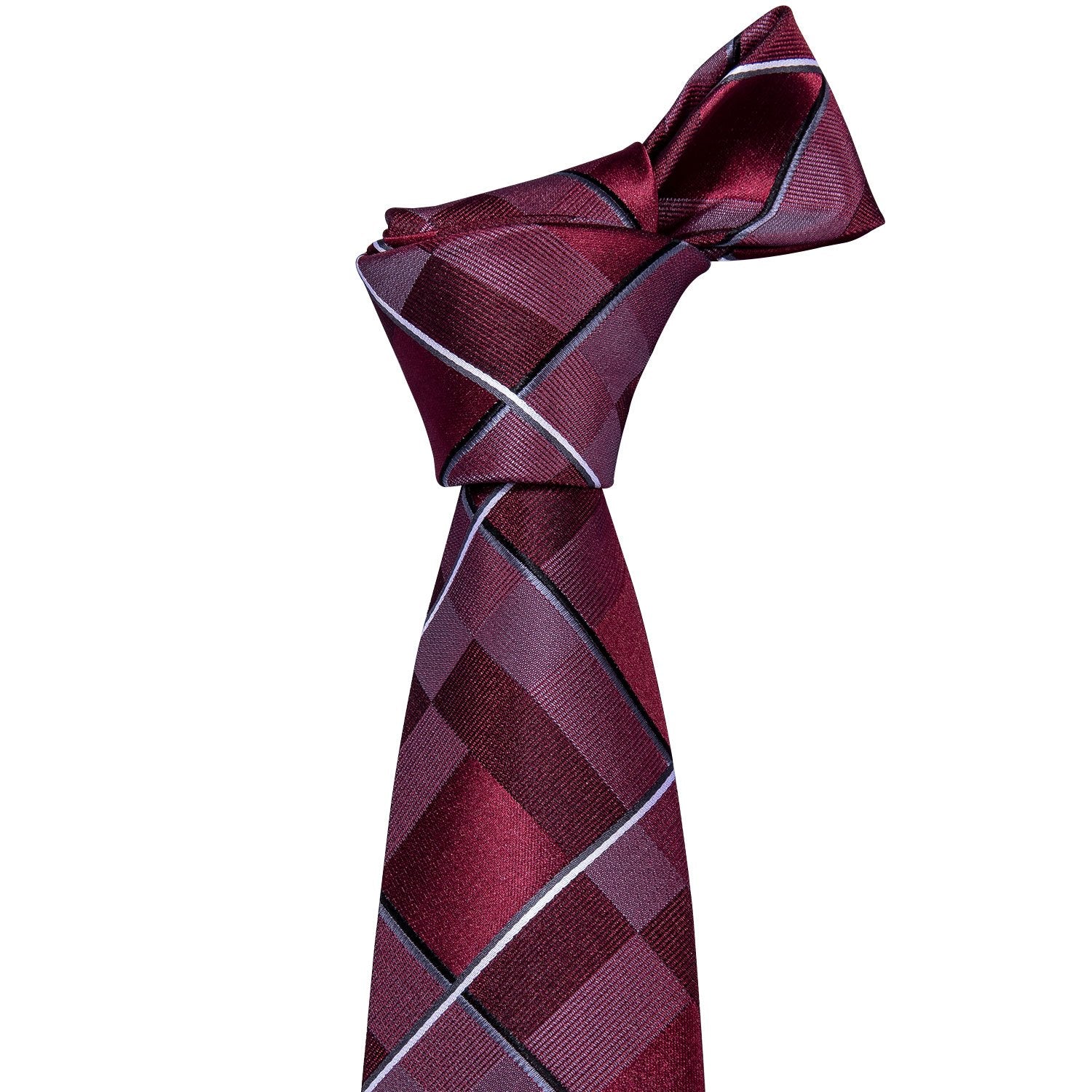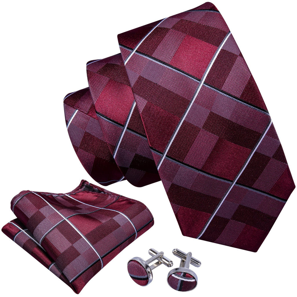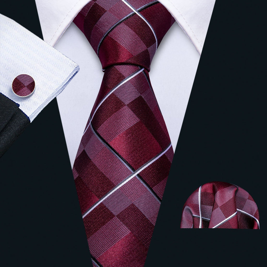 Barry. Wang Red Plaid Necktie Pocket Square Cufflinks Set