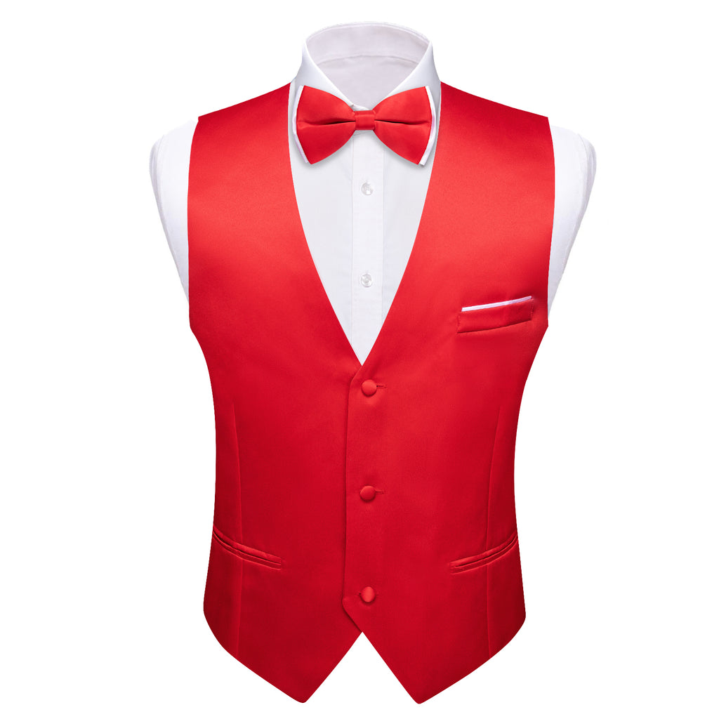 Barry. Wang Mens Red Suit Vest Solid Formal Wedding Vest Bowtie Hanky Cufflinks Set